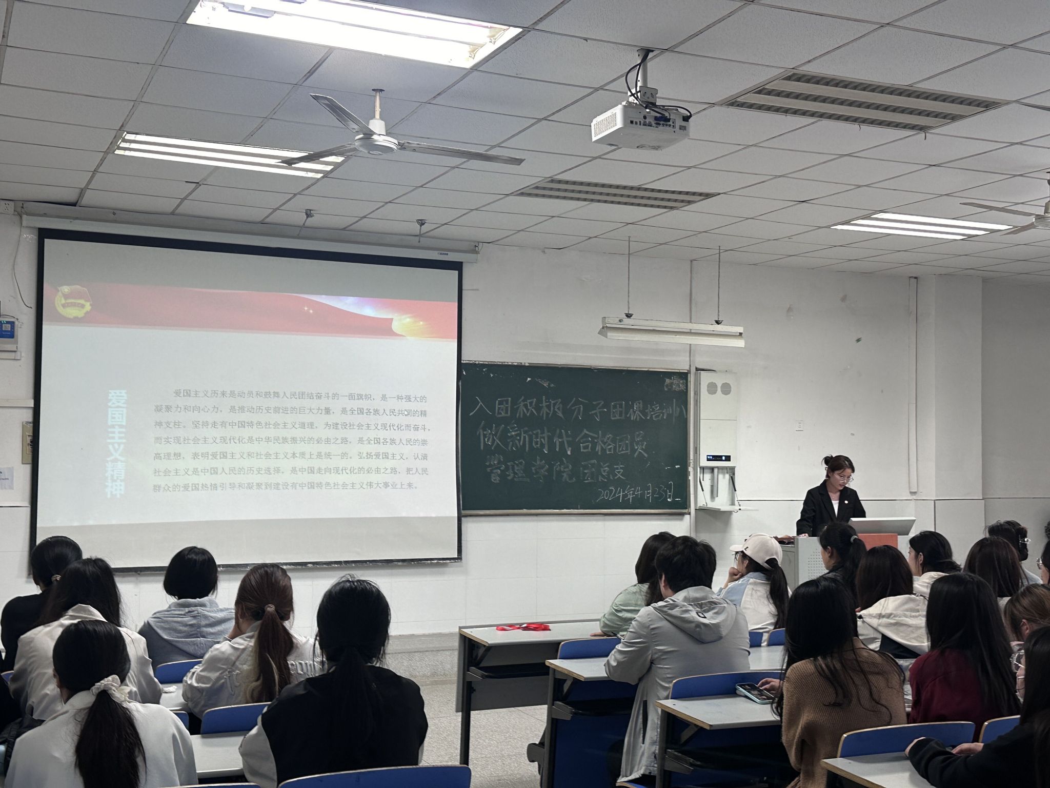 2024年4月23日中午12点,管理学院团总支在1102教室开展以“做新时代合格团员”为主题的团课活动。本次活动由团总支王雪主持,管理学院23级入团积极分子参加。活动旨在让同学们深刻理解并实践新时代合格团员所应具备的品质。