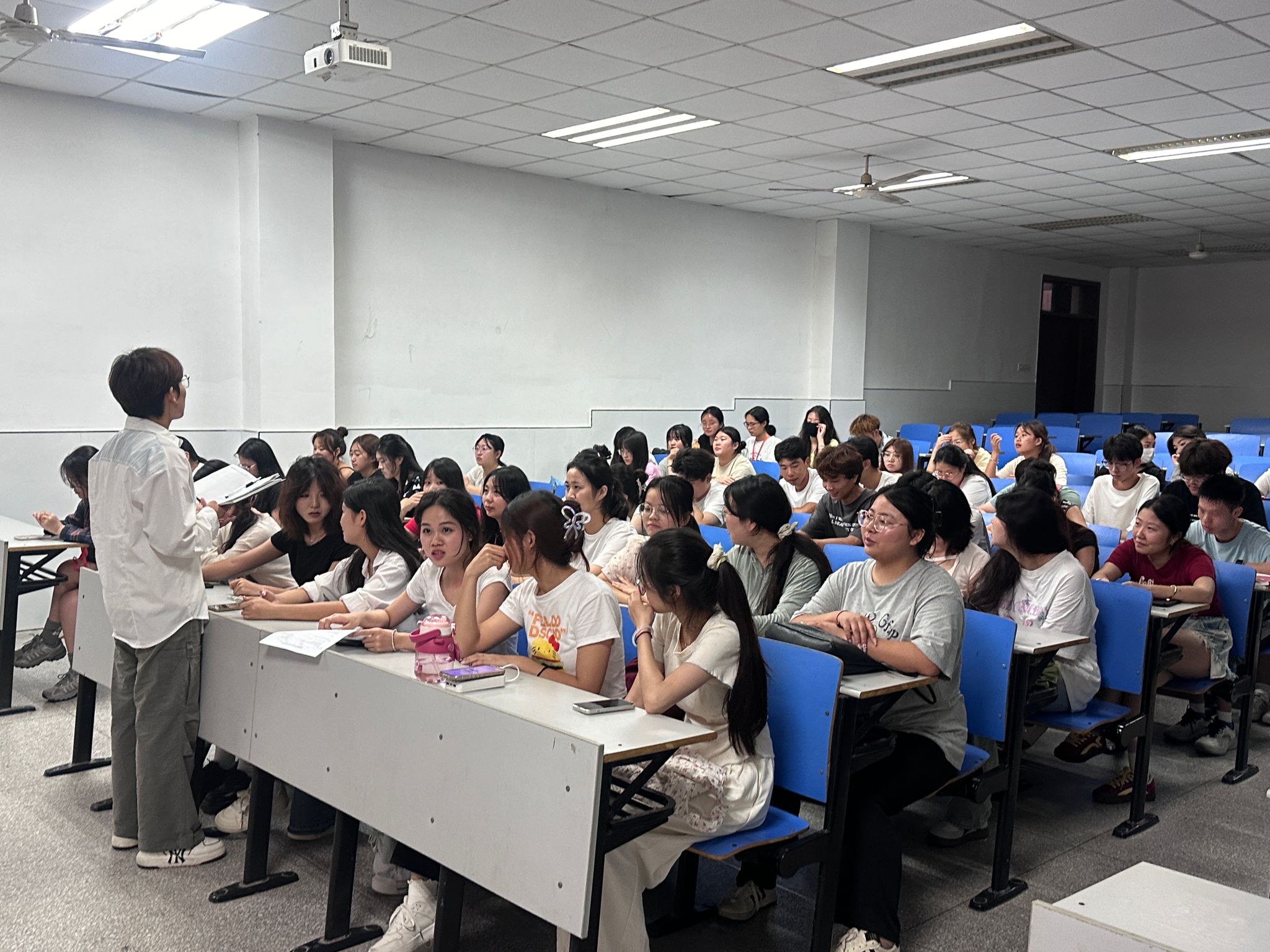 大会开始,首先由办公室进行点名。其次,副书记王婷对值班问题进行了重点强调。她指出,各干事在值班过程中,需严格遵守纪律,主动积极,不得迟到早退。同时,遇到老师要主动问好,展现团总支成员的良好风貌。接下来,副书记对大一招新问题进行了详细讲解。国庆节过后,团总支干事们要充分利用大一晚自习时段,深入各班进行宣传,以扩大团总支的影响力,让更多同学了解团总支的工作和活动,积极鼓励同学们加入团总支大家庭,为团总支注入新的活力与期待。会议的最后,对军训值班工作提出了严格要求。在军训期间,值班成员们要密切关注大一新生的安全,确保帐篷内秩序井然,严禁玩手机、聊天。如遇新生身体不适,要及时与辅导员沟通,并协助老师将其送往健康驿站。新生安全问题也是会议关注的焦点。团总支成员要提高警惕,切实保障新生的人身安全。同时,遇到紧急情况,干事们要冷静应对。