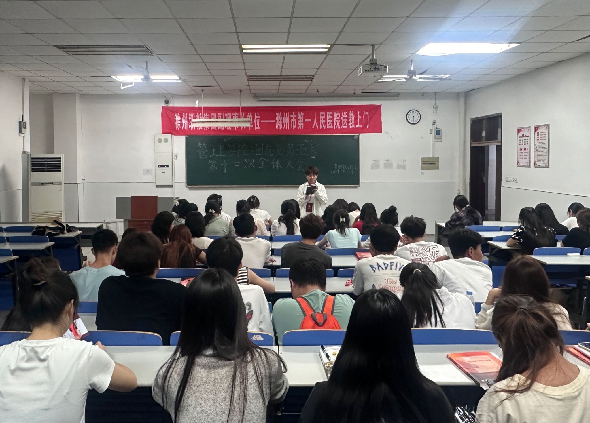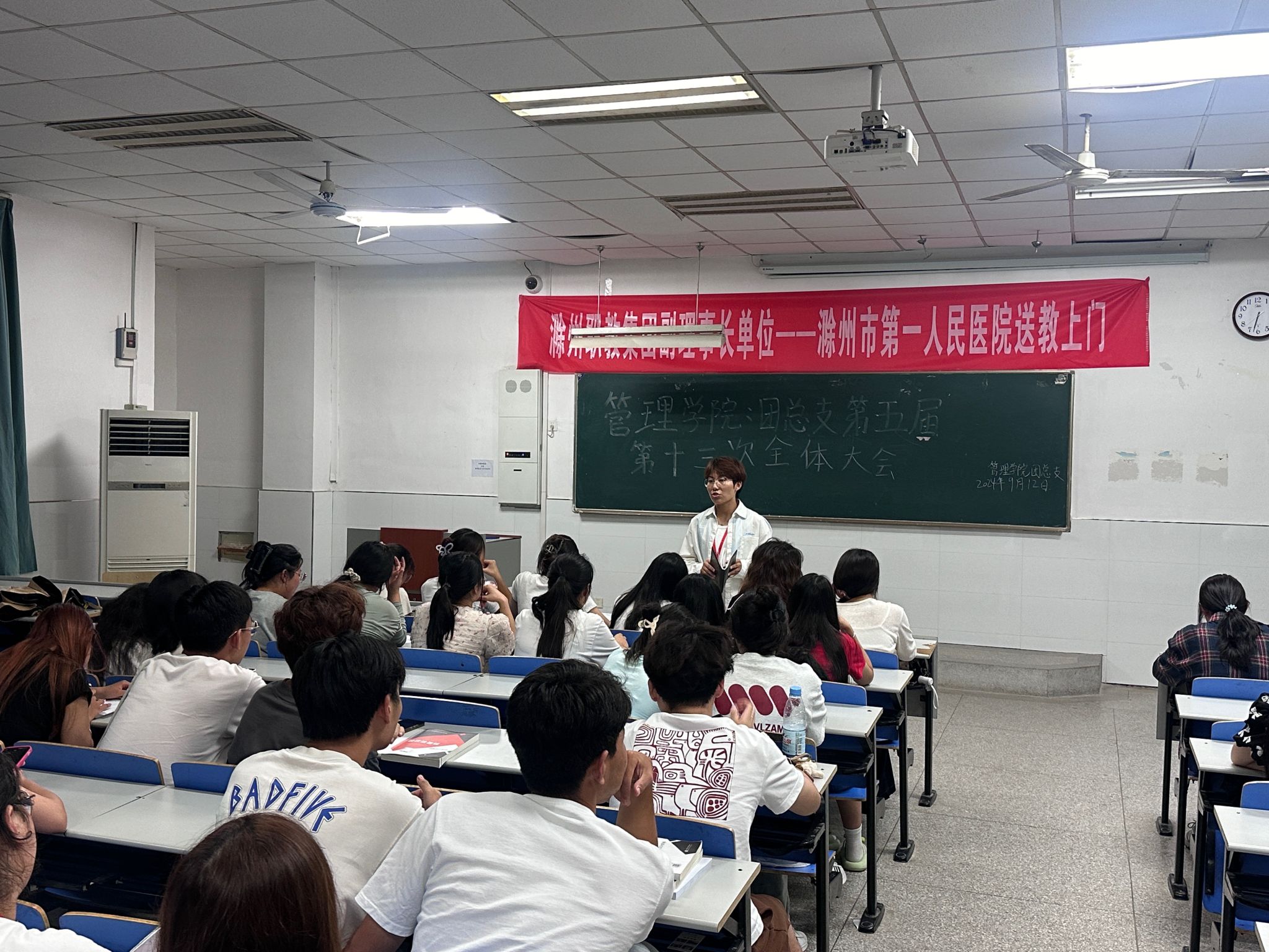 2024年9月12日下午六点三十分,管理学院团总支在1102教室开展第五届第十三次全体大会,本次大会由团总支副书记王婷主持,全体成员参加。