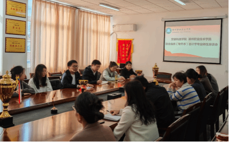 为切实推进新葡的京官网专升本会计学专业教育教学工作,有效解决同学们在校期间学习、生活等方面的困惑,11月6日,管理学院在1405会议室召开专升本会计学专业师生座谈会。参加座谈会的有安徽科技学院会计系主任岳文忠副教授、管理学院财务会计系主任夏敏、会计学专业授课老师和各班学生代表,会议由财务会计系党支部书记朱永勇主持。