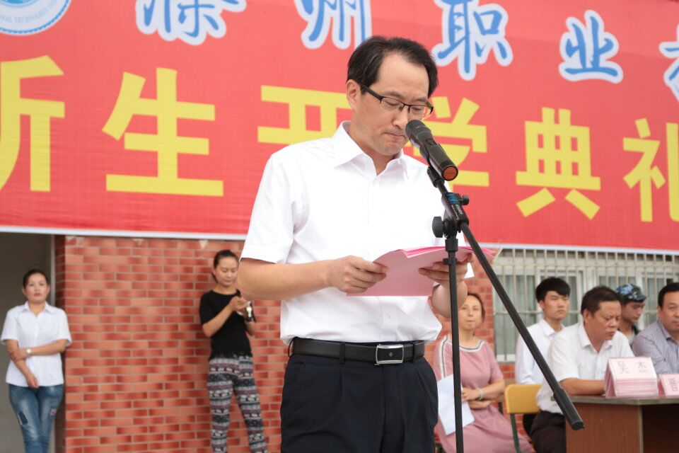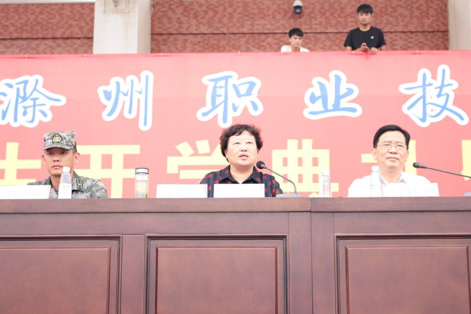 校党委副书记、校长许雪峰在仪式上致辞。许雪峰代表全校师生员工对新生的到来表示热烈的欢迎。随后,许雪峰对学校丰硕的办学成果进行回顾,对学校的实验实训、师资队伍、专业建设、办学规模、校园设施等情况做出介绍。许雪峰强调,学校将继续遵循高等教育的内在规律,职业教育的自身特点,按照“12345”总体发展思路,进一步加强基础建设、教研教改、实践教学、学术交流、文化熏陶、校企合作及对外交流,努力把学校建成“省内一流、国内知名、特色鲜明”的地方技能型高水平大学。许雪峰对新同学提出了三点希望。一是怀揣梦想,勇于担当。二是锻炼自我,培养自我。三是精技强能,提高本领。许雪峰希望同学们能如学校校歌中唱的一样“江山代有人才出,一代更比一代强”。学校将和同学们一起砥砺前行,筑梦未来。典礼上,教师代表、老生代表、新生代表及军训教官代表分别作了发言,部队首长就军训事宜作指示。校党委书记李柱梁宣布2018级新生军训正式开营。连营吹号角,沙场秋点兵。在接下来的14天里,2018级全体新生将在军训场上挥洒汗水,经受意志的磨砺,获得心灵的洗礼,上好大学第一课,写好成长新篇章。