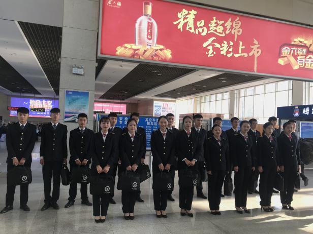 同学们在滁州北站参加志愿者活动,了解站内的工作内容,负责站内的二次安检、引导以及检票入站等相关工作。
