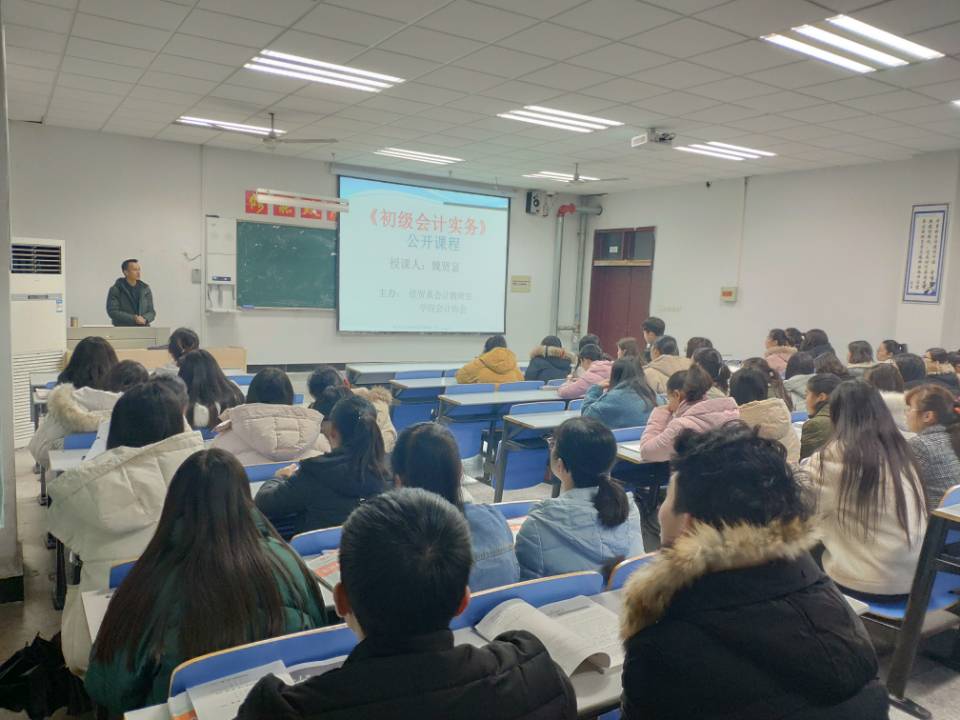 12月22日,由经贸系会计教研室与校会计协会联合举办的《初级会计实务》公开课程在1119教室如期开展。本次公开课程由会计教研室魏贤富老师主讲,到场听课的同学包括校会计协会成员、18级新生以及拟申请转入会计专业的部分同学。