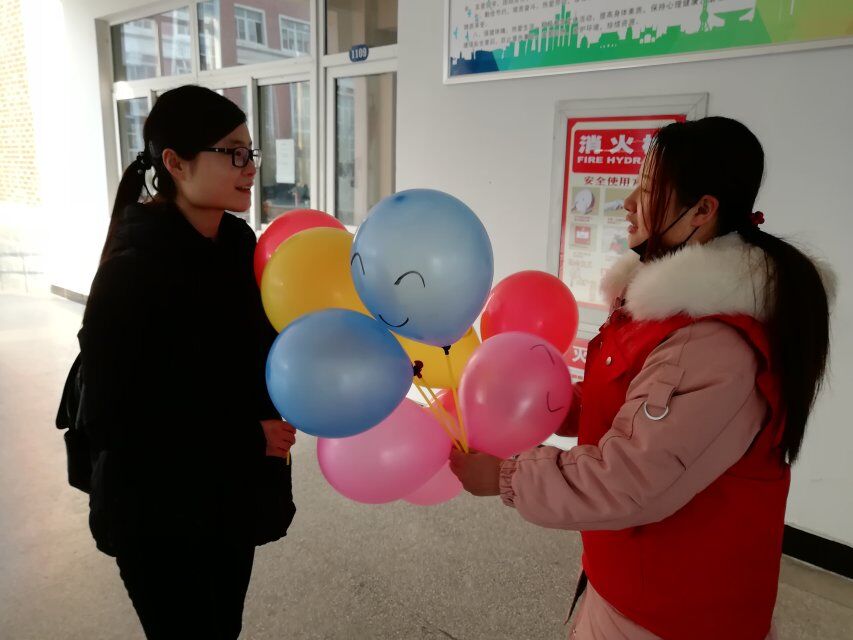 活动的开始,大一干事们准备好了要送给女生们的气球,提前站在女生们去往教室的路上,给她们一个惊喜。翡翠似的绿荫,金子般的阳光,道路上闪动着的倩丽身影,纯真的笑容,都在展现青春的美好。同学们朝气蓬勃、青春四溢、天真活泼、神采飞扬,让这个女生节变得美好,更有意义。
