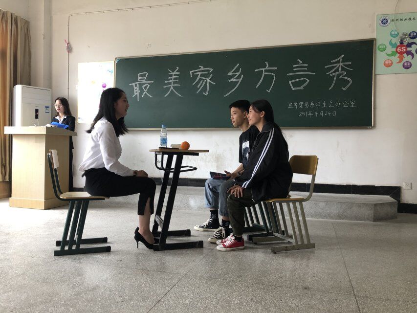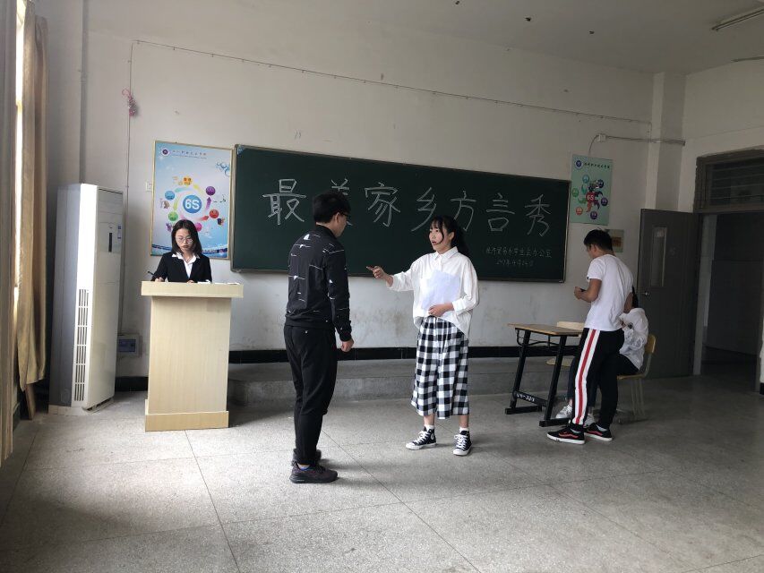 为了推进学校举办的校园文化艺术节,同时也为了展现家乡文化特色,锻炼学生表演技巧。经贸系学生会办公室于4月24日中午在1323教室举办“最美家乡方言秀比赛”。担任本次大赛的评委有:经济贸易系学生会主席章婉;学生会生活部部长陆小草;学生会办公室副主任蒋梦晨。
