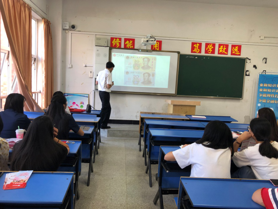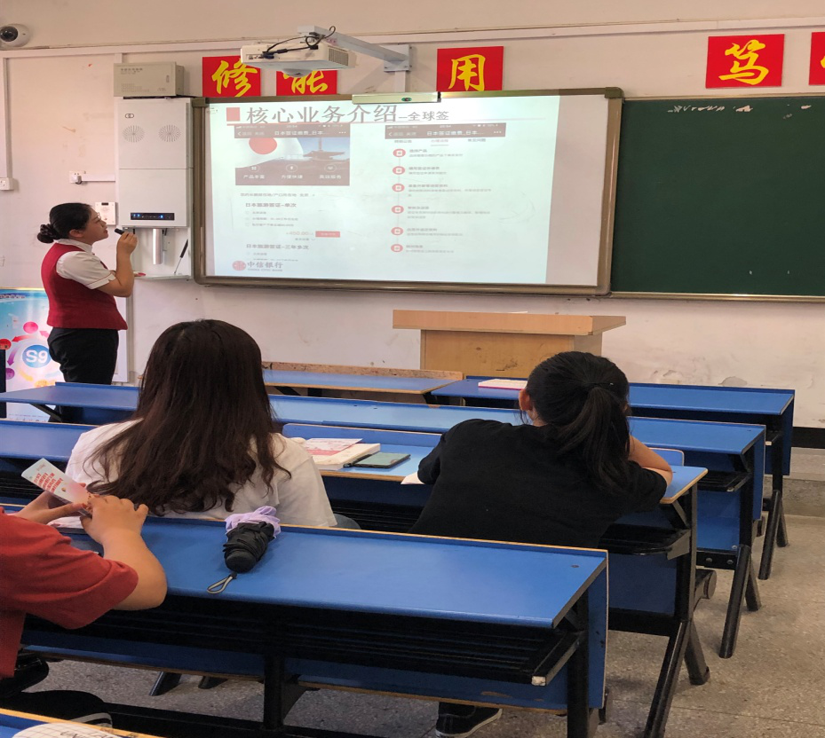 中信银行股份有限公司滁州分行刘经理一行到新葡的京官网投资理财专业进行2019新版货币识别讲座,讲座内容包括:介绍2019新版人民币与旧版人民币防伪的不同之处,其次介绍了中信银行的境外出国理财服务、最后对网络金融诈骗进行宣讲。