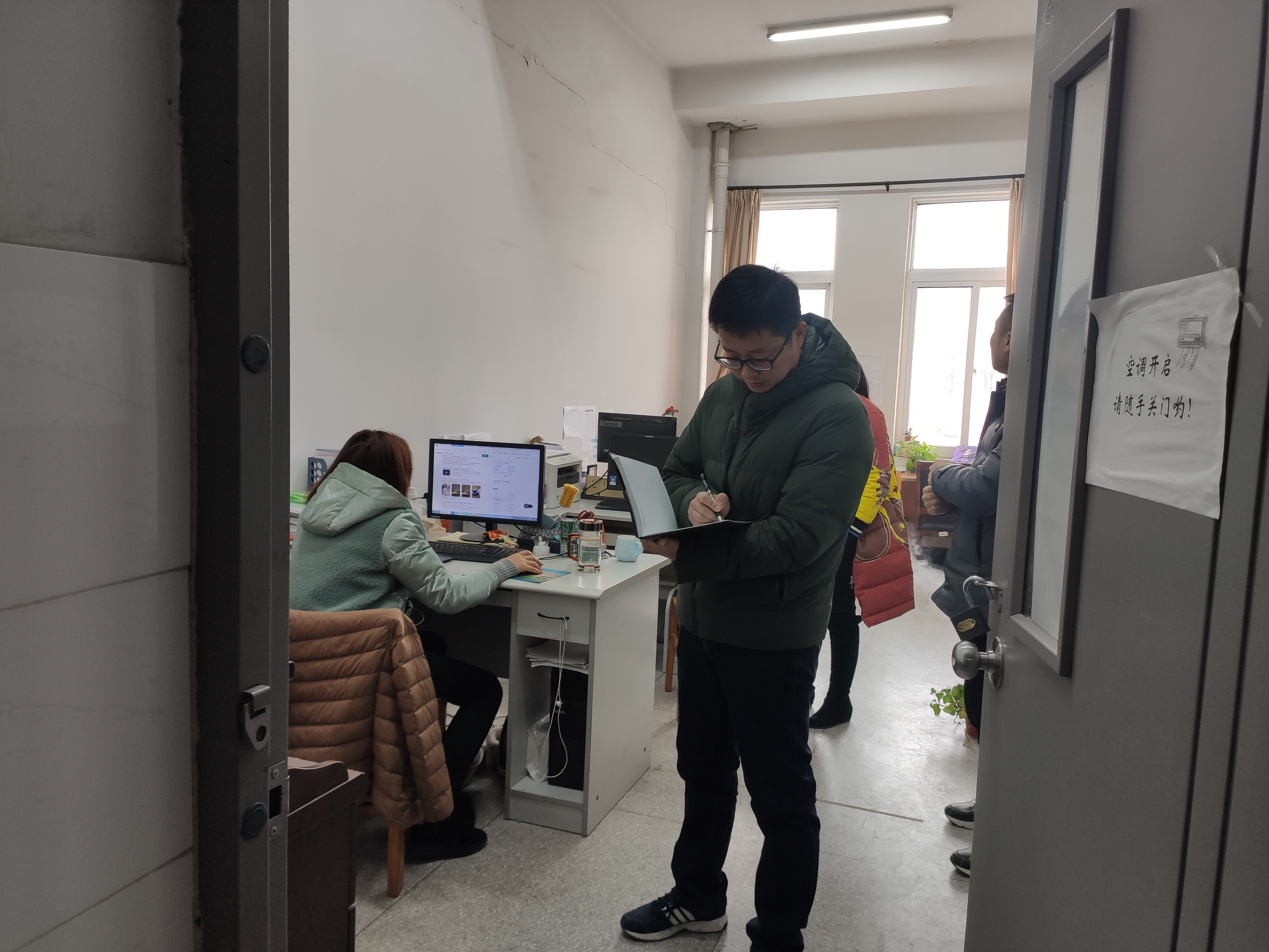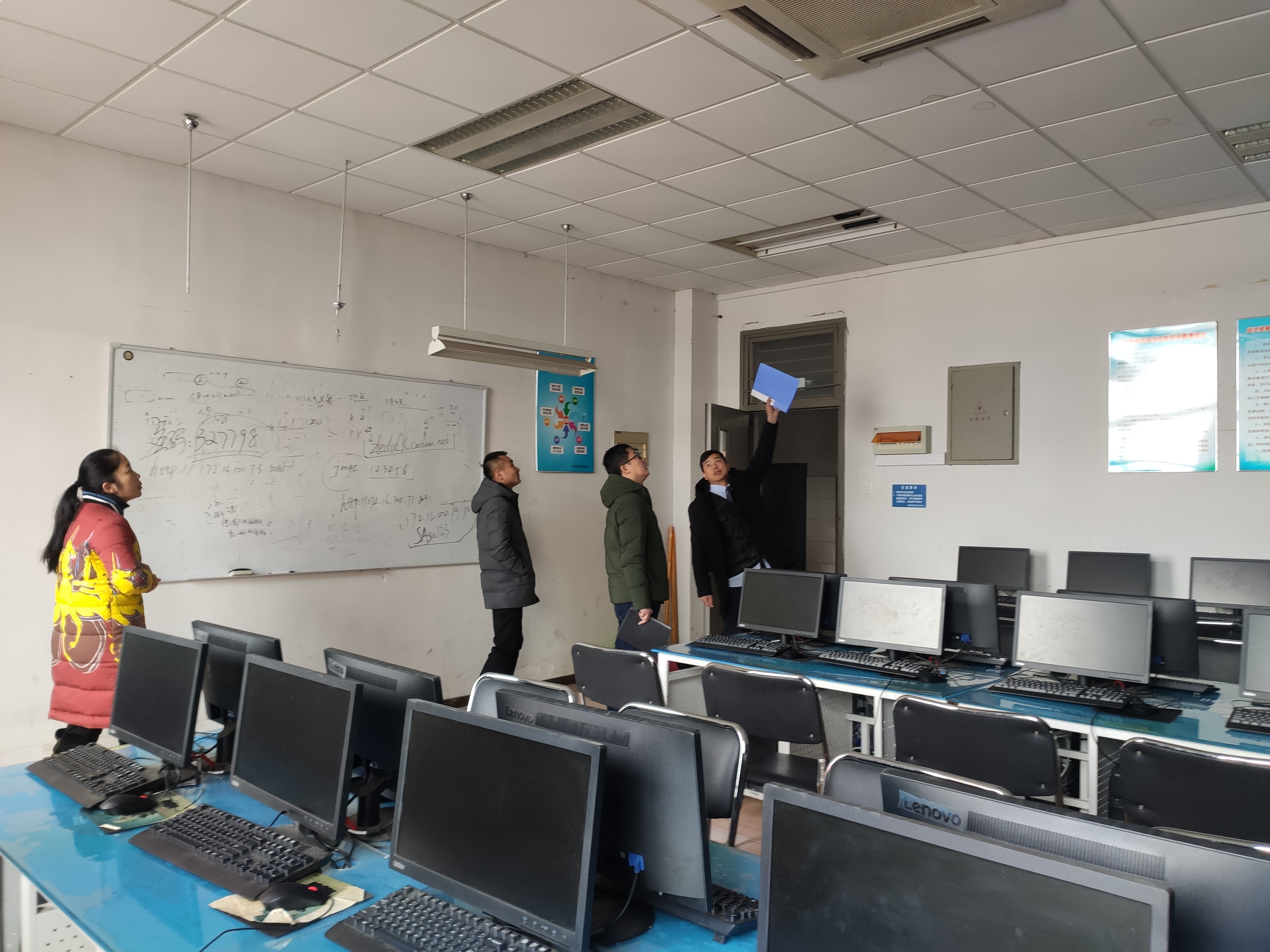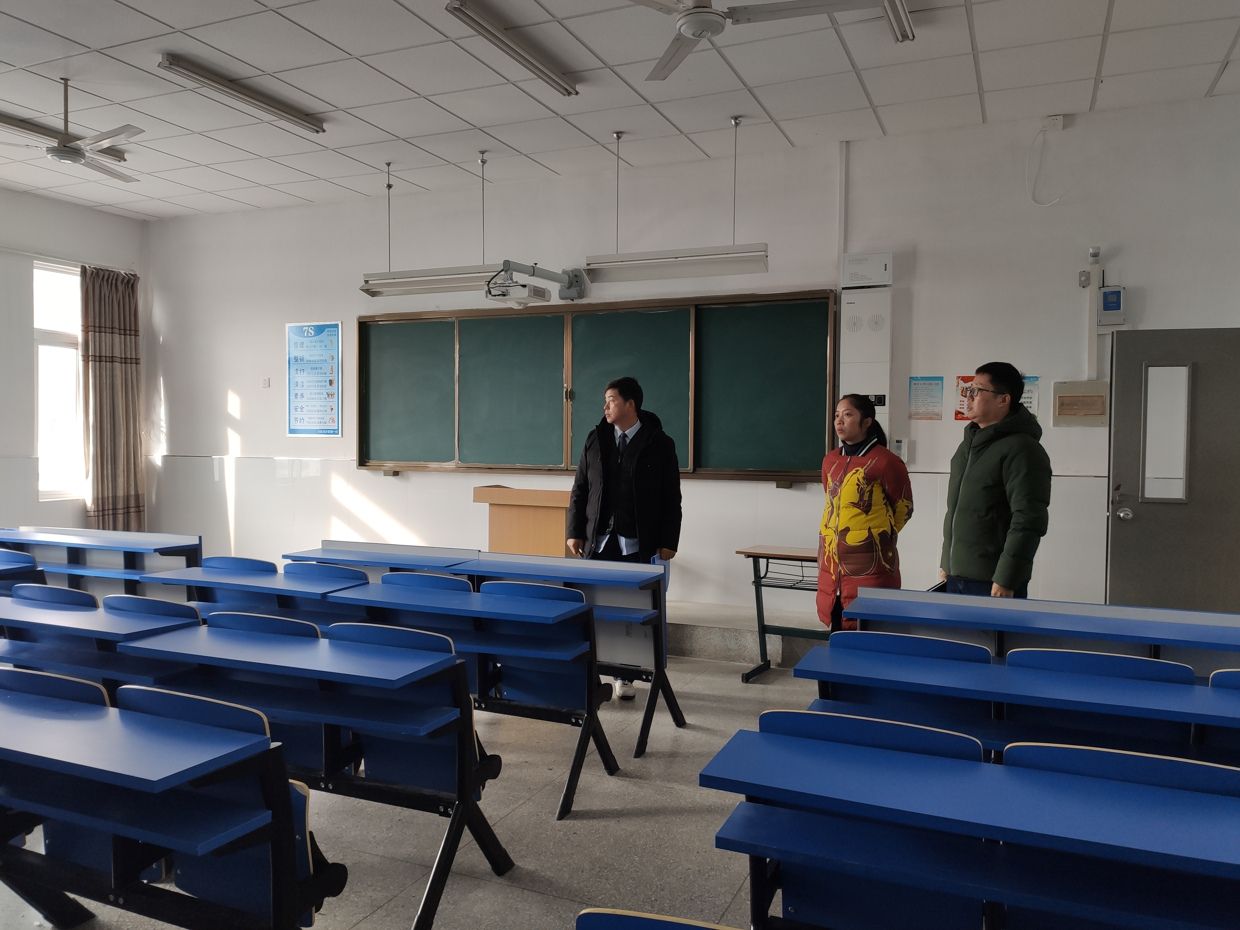 1月6日上午,管理学院组织开展安全大检查工作。管理学院党总支书记耿学刚、副院长颜洲、副书记何文婧带领管理学院相关老师,对管理学院办公区域、教学区域、实训中心、学生活动场所等开展安全检查。耿学刚带领大家对办公室、教学、实训中心和学生活动场所的各类设施设备等深入排查,对发现的相关隐患问题逐一记录,并对下一步教学楼布置和安排做了相关工作要求,指出学院安全检查工作要建立起完善的长效管理机制,规范管理学院安全管理的规章制度,提高安全管理工作水平。