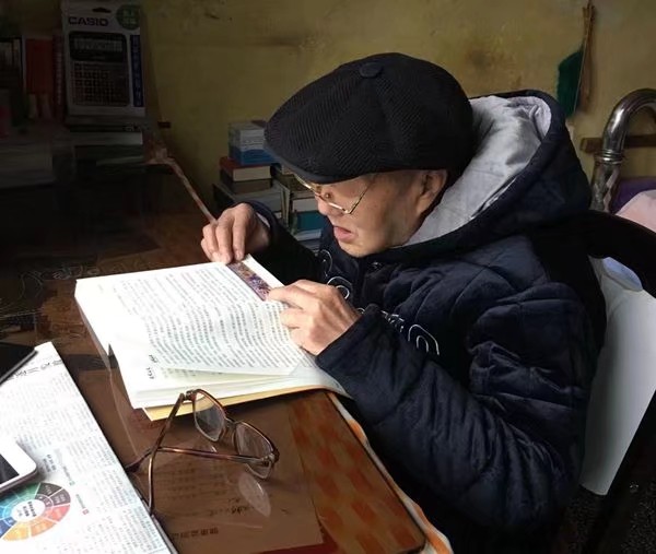 2020年12月,受白内障困扰的张富清把尺子按在书上,一行字一行字地坚持阅读