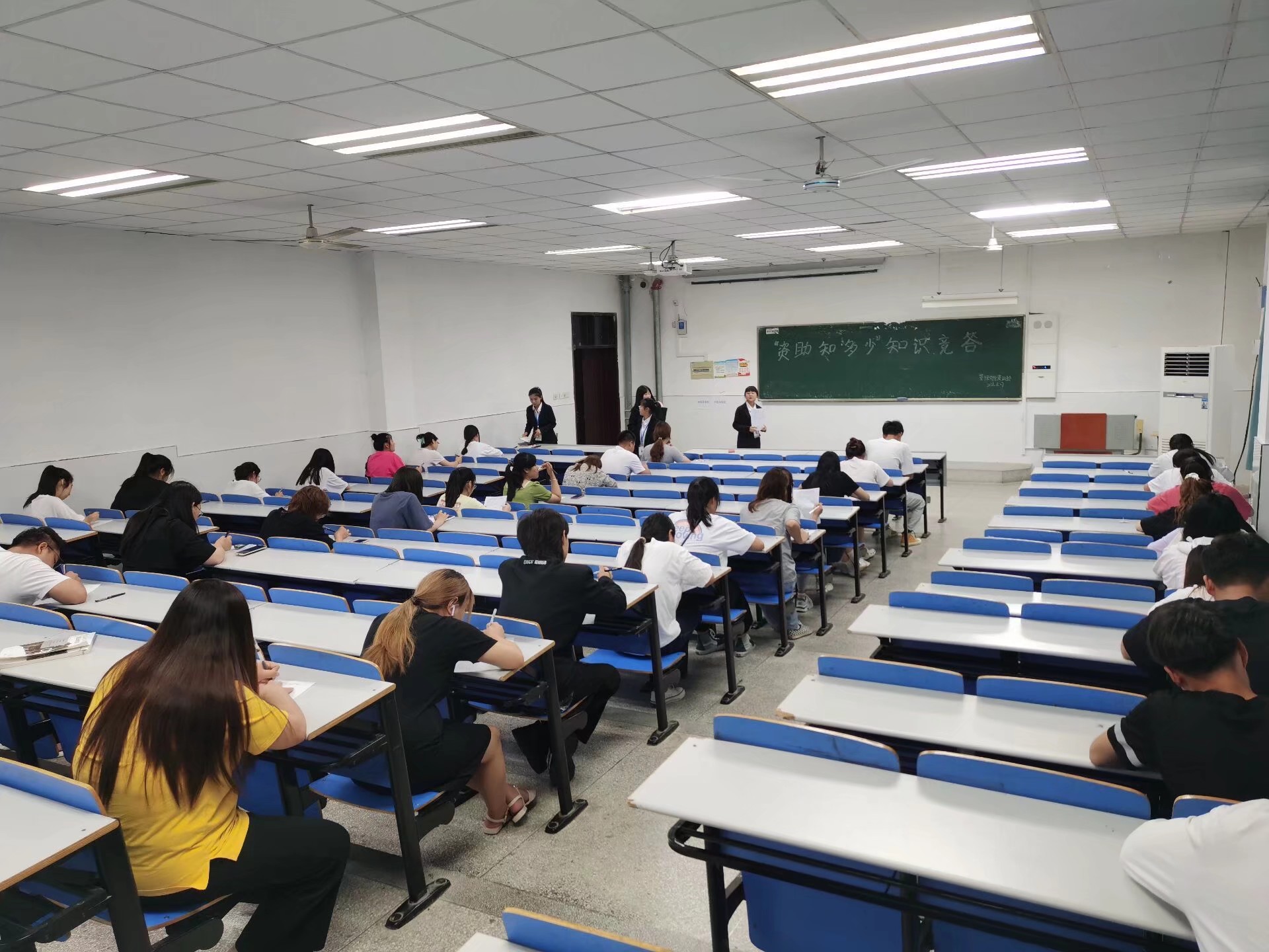 本次资助知识竞答活动采用试卷答题,题目数量为50道,分为多选题和填空题的形式,总分100分。同学们踊跃参与到此次竞答活动中,展现了新葡的京官网青年学生热情好学、积极主动的精神风貌。