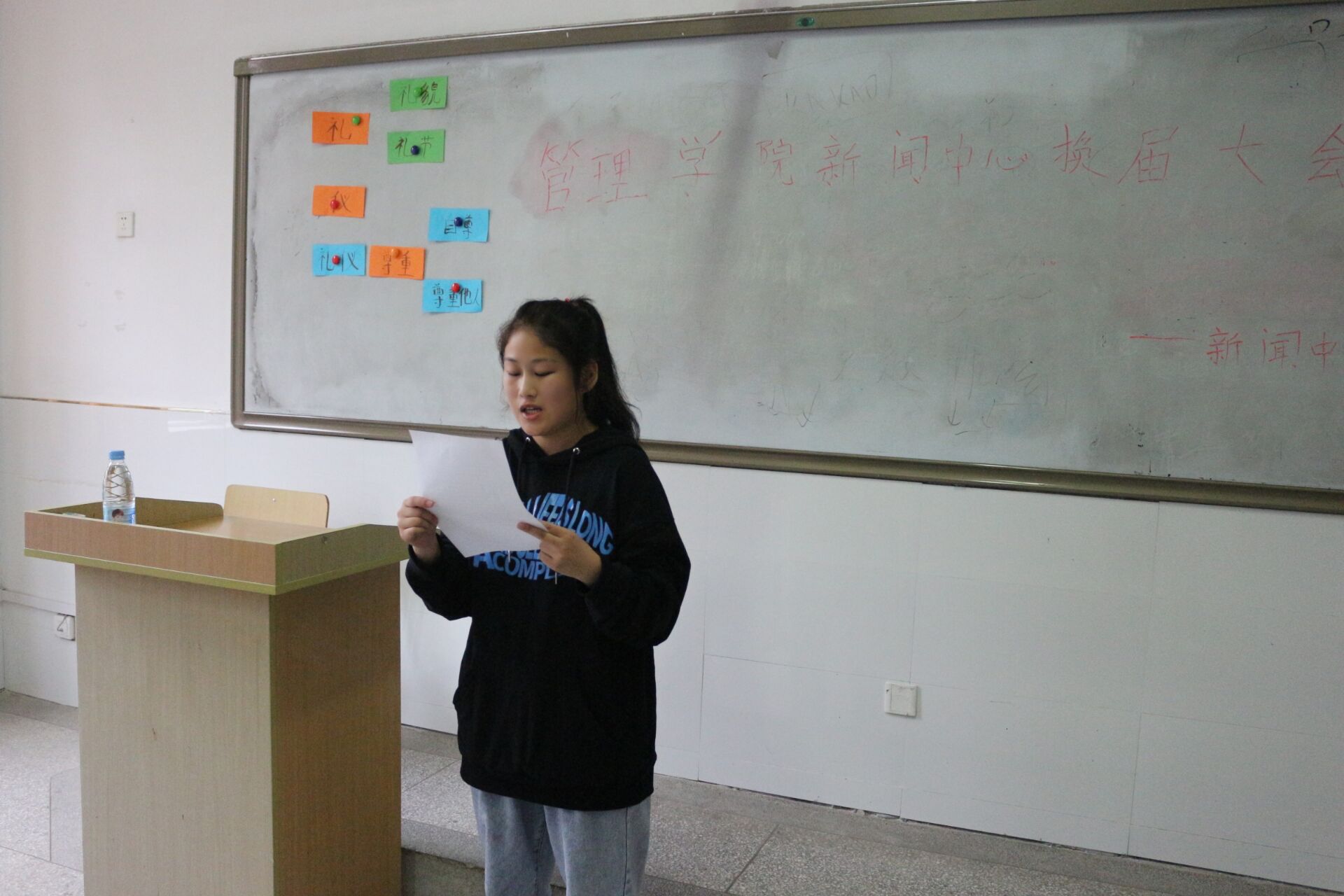 大会开始,首先,由新一届主任和各部门部长依次发表就职演说,分别表述了对部门今后的规划以及表明自己对发展好,建设好部门的决心。随后,由上届主任许艺萍发表讲话,她希望新闻中心能够继续团结一心,砥砺前进,在未来能够展现出不一样的色彩。