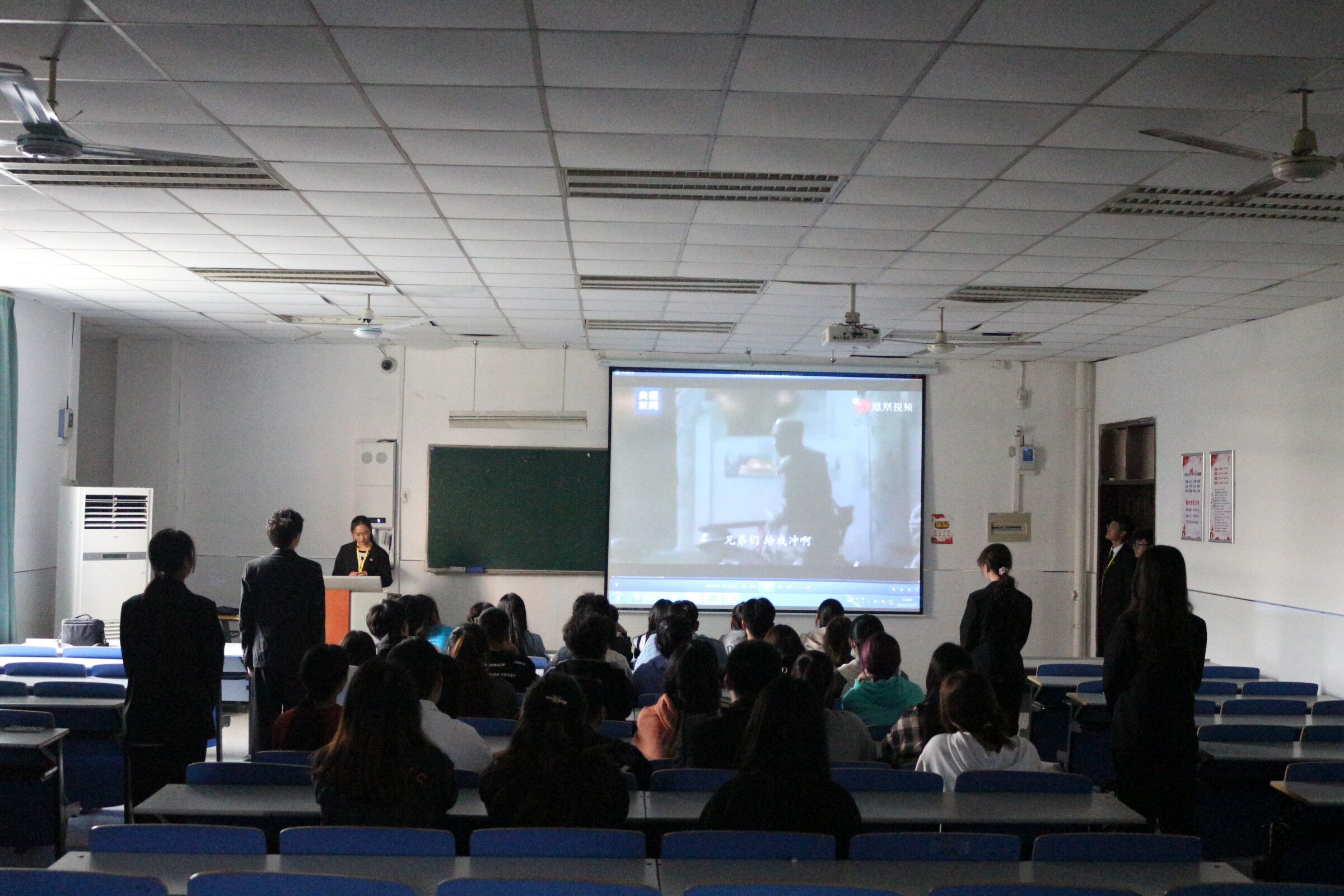 活动开始,张小雨向同学们介绍中国共产党的历史,团旗、团徽的含义,接着带领同学们观看抗日主题电影,使同学们了解历史,增强爱国主义精神,切身感受到先烈们为祖国事业做出的巨大贡献和牺牲。观影结束后,团总支的同学教同学们唱团歌。