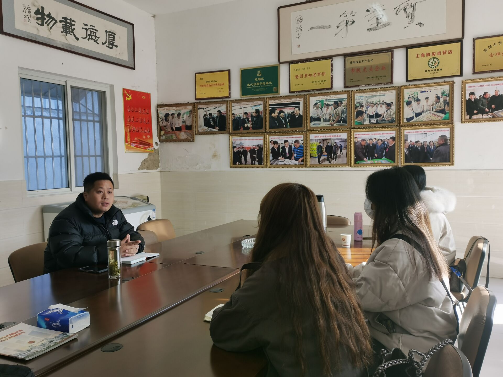12月6日上午,管理学院团总支书记袁一老师带领学院3名优秀学生代表一同前往安徽汉革食品科技有限公司,拜访公司经理刘飞先生。