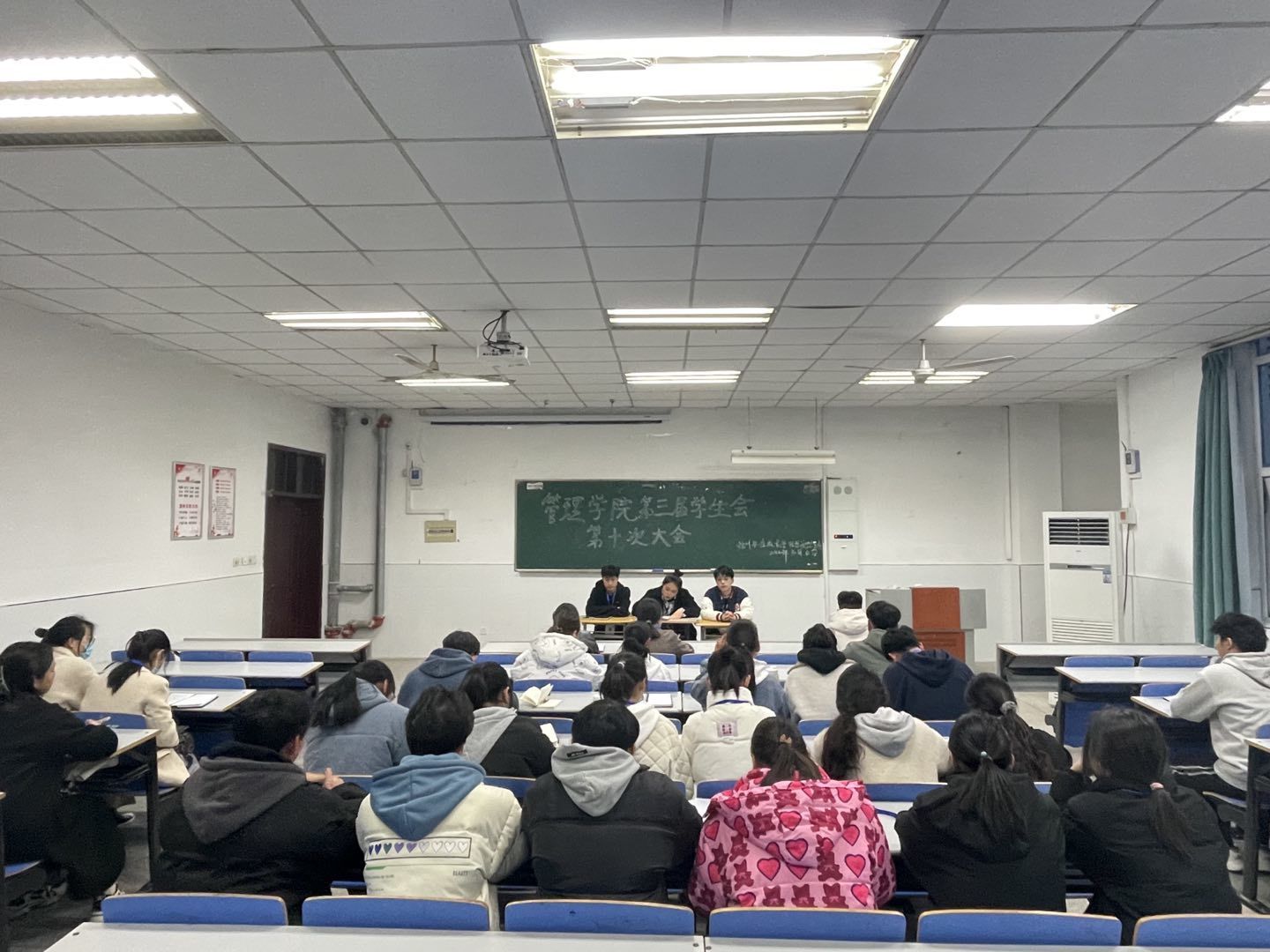 主席王梦缘再次强调作为新时代的青年,一定要注重待人接物的礼貌和修养,此外全体成员要多关注本院的官网、公众号、抖音等新媒体,了解学院的最新动态。副主席孔珺禾和殷茂源要求大家务必重视值班,值班是展现本院学子良好风貌的一个窗口,要以昂扬的精神状态迎接新的一天。