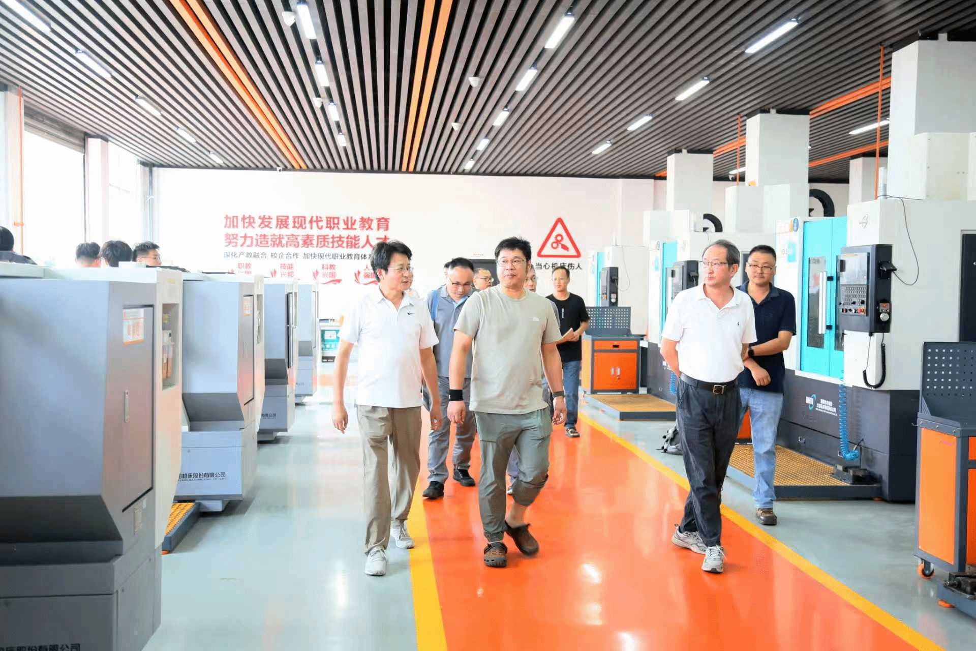 王园园一行在校长许雪峰、副校长苏有良的陪同下,首先参观了校内多个实验实训室,涵盖机械与汽车工程、电气工程等多个专业领域。参观过程中,双方就实训教学模式、实践项目开展等内容进行了细致交流,探讨如何将企业的实际生产需求融入学校的教学体系,提升学生的实践操作能力与职业素养。
