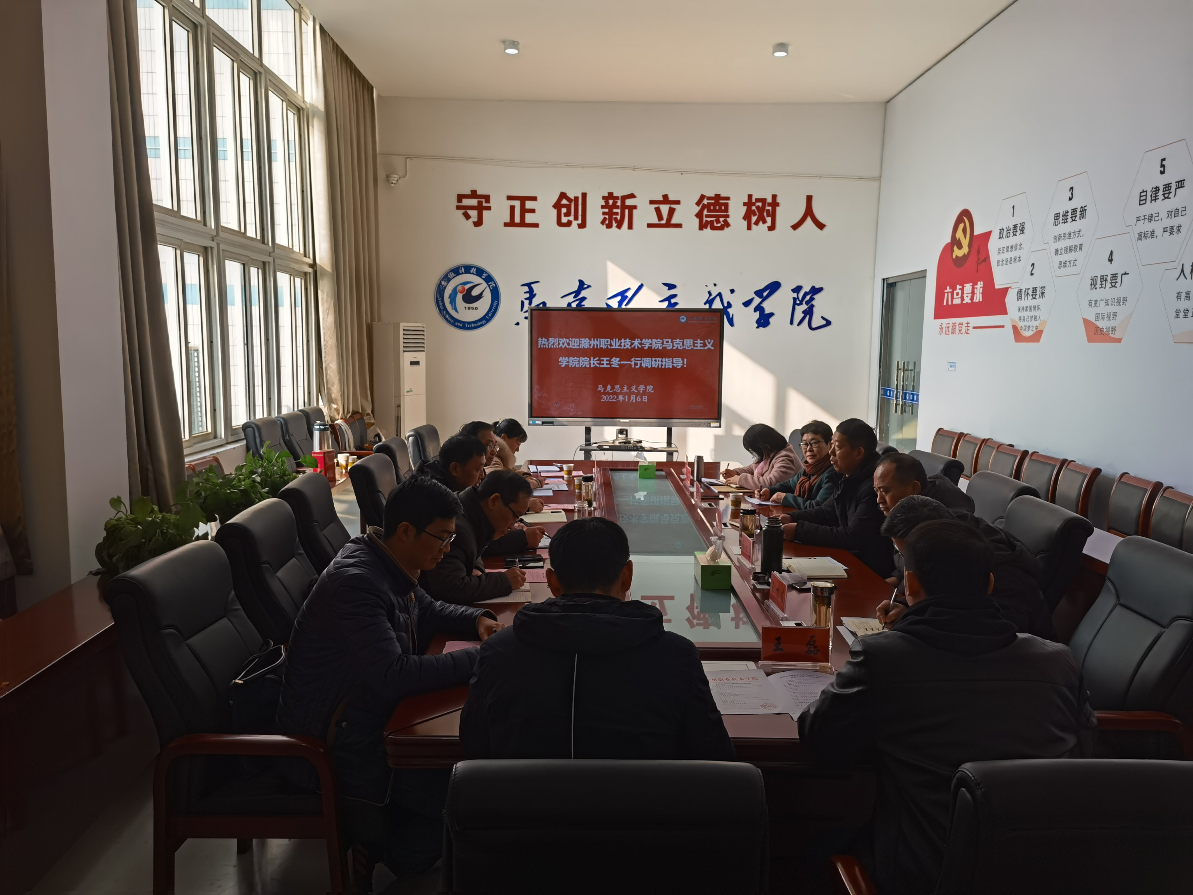 1月6日,校党委委员、马克思主义学院院长王冬带队到安徽科技学院调研联合培养本科思政课建设情况,受到了安徽科技学院马克思主义学院院长张德化、党总支书记杨仕勇的热情接待。马院副院长孔金和本科班思政课教师参加调研。