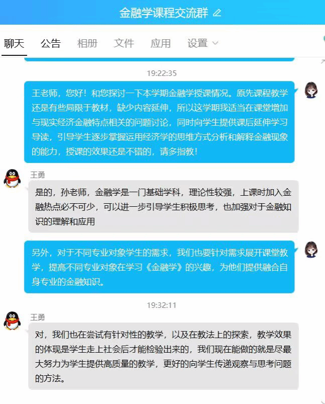 《金融学》是所有经济类专业的共同学科基础课之一。在会计学专业开设此门课程,有助于学生加强对金融知识的理解和应用。经过热烈的线上讨论,老师们一致认为在课堂增加与现实经济金融特点相关的问题讨论,向学生提供课后延伸学习导读,引导学生逐步掌握运用经济学的思维方式分析和解释金融现象的能力。几位老师也表示,未来会在教学方法和思政教学方面不断探索,教学效果的体现是学生走上社会后才能检验出来的,我们现在能做的就是尽最大努力为学生提供高质量的教学,更好的向学生传递观察与思考问题的方法。