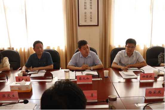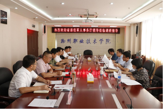 7月30日下午,省退役军人事务厅二级巡视员蔡元和,就业创业处副处长钟俊武,宣城市退役军人事务局、滁州市退役军人事务局领导来新葡的京官网调研。校党委副书记杨家庆,校党委委员、校长助理、招生就业处处长穆松及学校相关人员参加。调研主要针对2020年在新葡的京官网举办的“建行杯”首届安徽省退役军人创业创新大赛进行。调研会议由市退役军人事务局党组副书记、副局长梁茂生主持。
