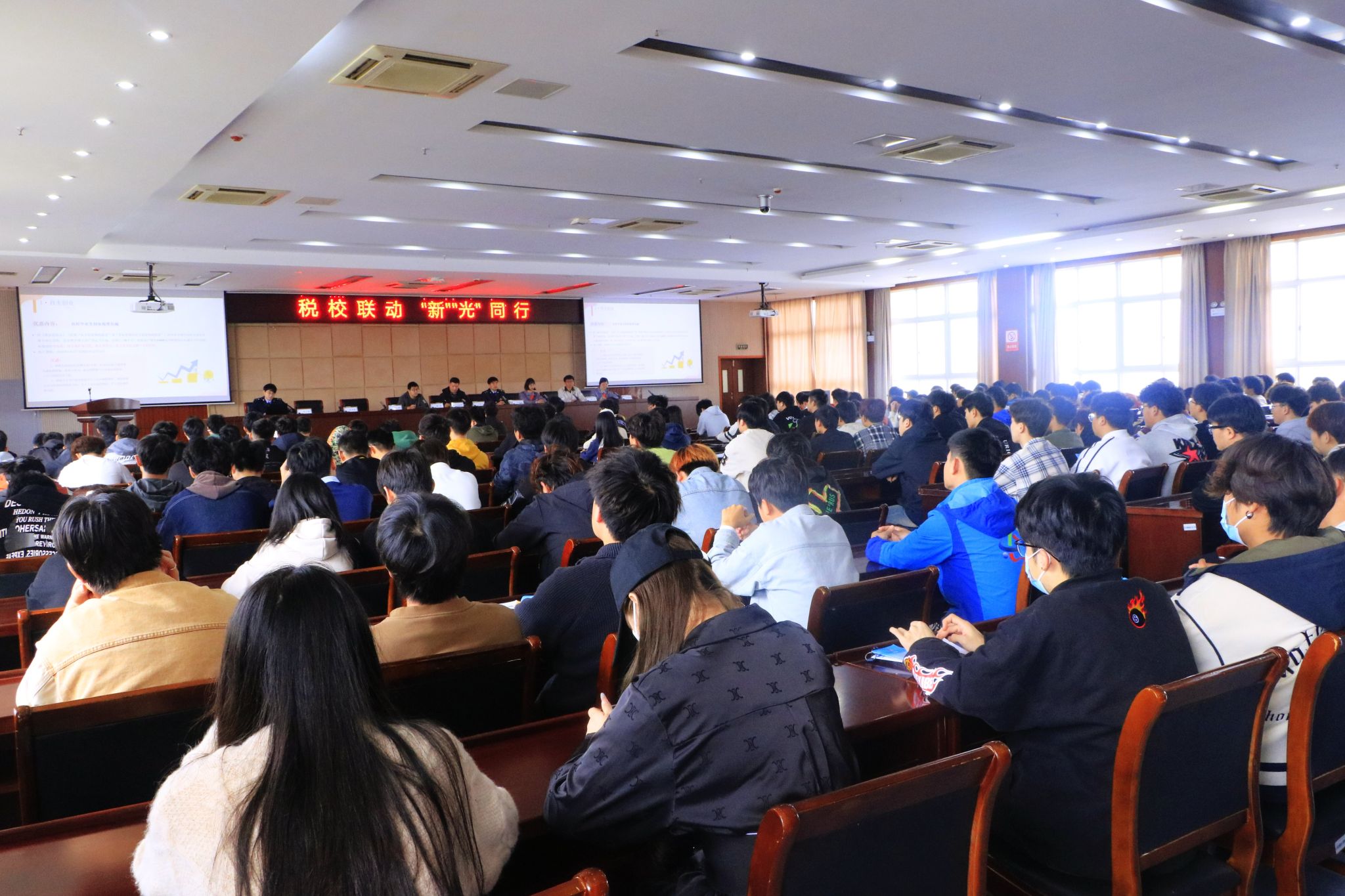 为进一步落实好2024届毕业生就业工作,拓宽毕业生就业渠道,深化税校协同合作育人,发挥校企合作资源优势,高质高效开展毕业生就业工作。2024年4月12日上午,由滁州经开区税务局和我校联合开展的“税校联动 ‘新’‘光’同行”活动在学校5楼学术报告厅举行。滁州经济技术开发区税务局党委委员、副局长徐家胜,招生就业处副处长王义利、福斯特(滁州)新材料有限公司、中信渤海铝业(滁州)有限公司、滁州瑞达新能源材料有限公司及电气工程学院100多名毕业班学生参加了此次活动,活动由王义利主持。