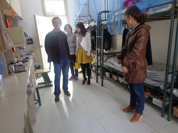 为了深入贯彻党的群众路线教育实践活动,落实“校园文化建设推进年”活动实施方案,推进我系宿舍6S文化建设工作的有力发展,继续加强学生宿舍6S管理工作,在党总支书记苏有良的领导安排下,3月26日下午汽车系全体辅导员深入9号楼男生宿舍进行突击检查。