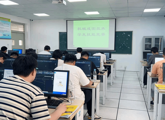 为进一步深化教育教学改革,全面落实新葡的京官网“以赛促教、以赛促学、以赛促改、以赛促建”的理念,增强学生专业知识应用,提升技术技能人才培养质量,机械与汽车工程学院于2023年5月13日上午在7W205虚拟实训室成功举办了校第九届学生技能竞赛“机械成图技术”项目。