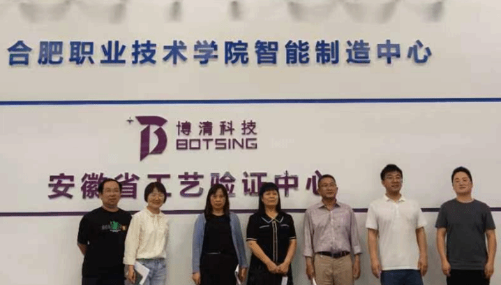 廖玉松一行先后走访合肥职业技术学院PLC实训室、工业机器人编程与应用实训室、工业机器人操作与运维实训室、机器人焊接实训室、机电一体化技术综合应用实训室、智能传感与检测实训室、计算机虚拟仿真等实训室,了解各实训室的运行情况、管理办法及售后维修等情况。
