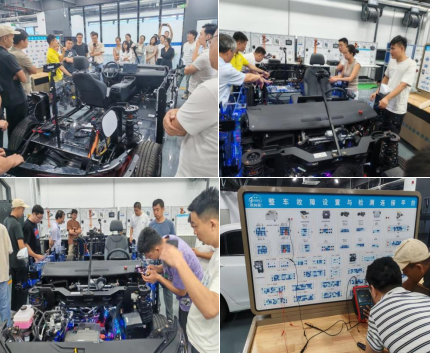 此次专项培训内容包括新能源汽车上电控制原理、CAN网络系统、车身电气系统、底盘控制系统、充配电系统、电力电子电路分析、刀片动力电池管理系统、热泵空调技术、智能驾驶辅助技术等多个重要领域,通过实战案例解析,提升了新能源汽车专业教师的专业素养与教学能力,推动教育教学模式的创新与升级。