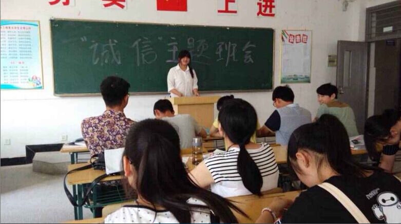 2015年5月24日上午,14级机制班在5213教室开展了以“诚信”为主题的主题团日活动。本次活动同学们热情高昂,纷纷上台发言对诚信的理解,让我们深知诚信的重要性,也让我们更深一层次的领悟:“诚信是中华民族几千年传承的美德”是立人之本、为学之道,最后,在一班的团支书带领下全体同学庄严宣誓:“诚信做人、诚信生活、诚信学习、诚信上网 、诚信劳动、诚信就业” 铿锵有力的声音表明了同学们坚定的决心与信念。