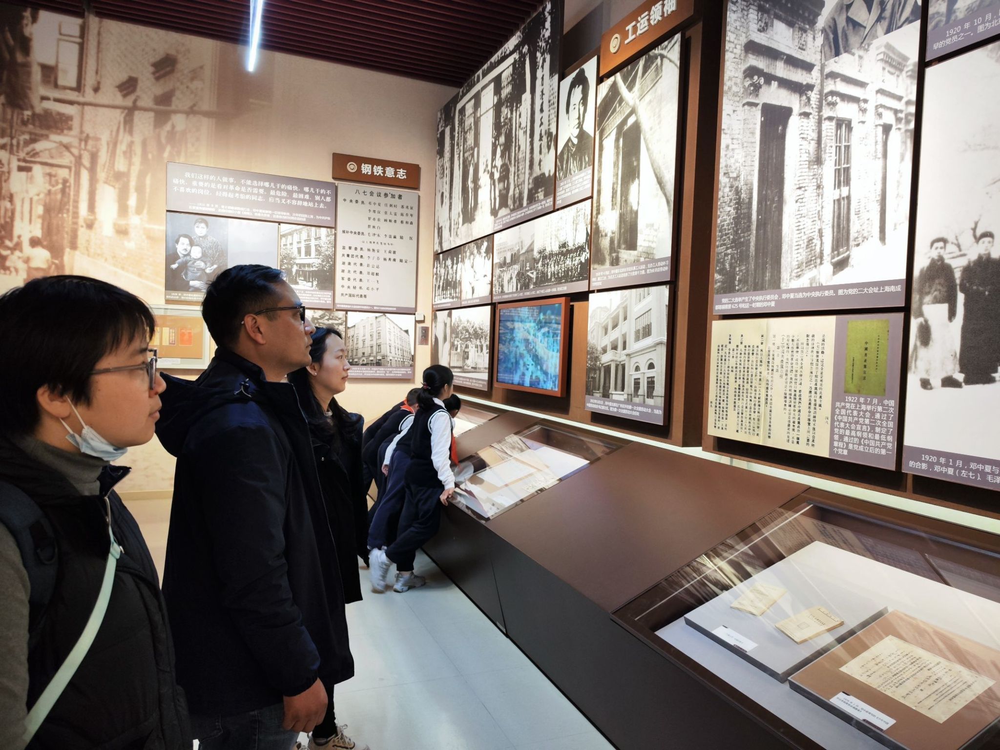 跟随指示牌,同学们来到了雨花台烈士馆。宏伟的纪念馆古朴典雅而又简洁庄重、门庭南北两面均雕有“日月同辉”花岗石浮雕,象征着烈士精神与山河共存,与日月同辉。馆内人来人往,但有序安静,那些压低的交流声,沉默的、长久的伫立,庄敬的面容深深感染着每一位同学。同学们在汉白玉上横平竖直的“信仰的力量”五个大字背后的1519名烈士前伫立,心中充满着震撼与钦敬。随后,同学们一一观看了烈士雕塑及遗物,感悟烈士们为了崇高理想不惧流血牺牲的伟大精神。