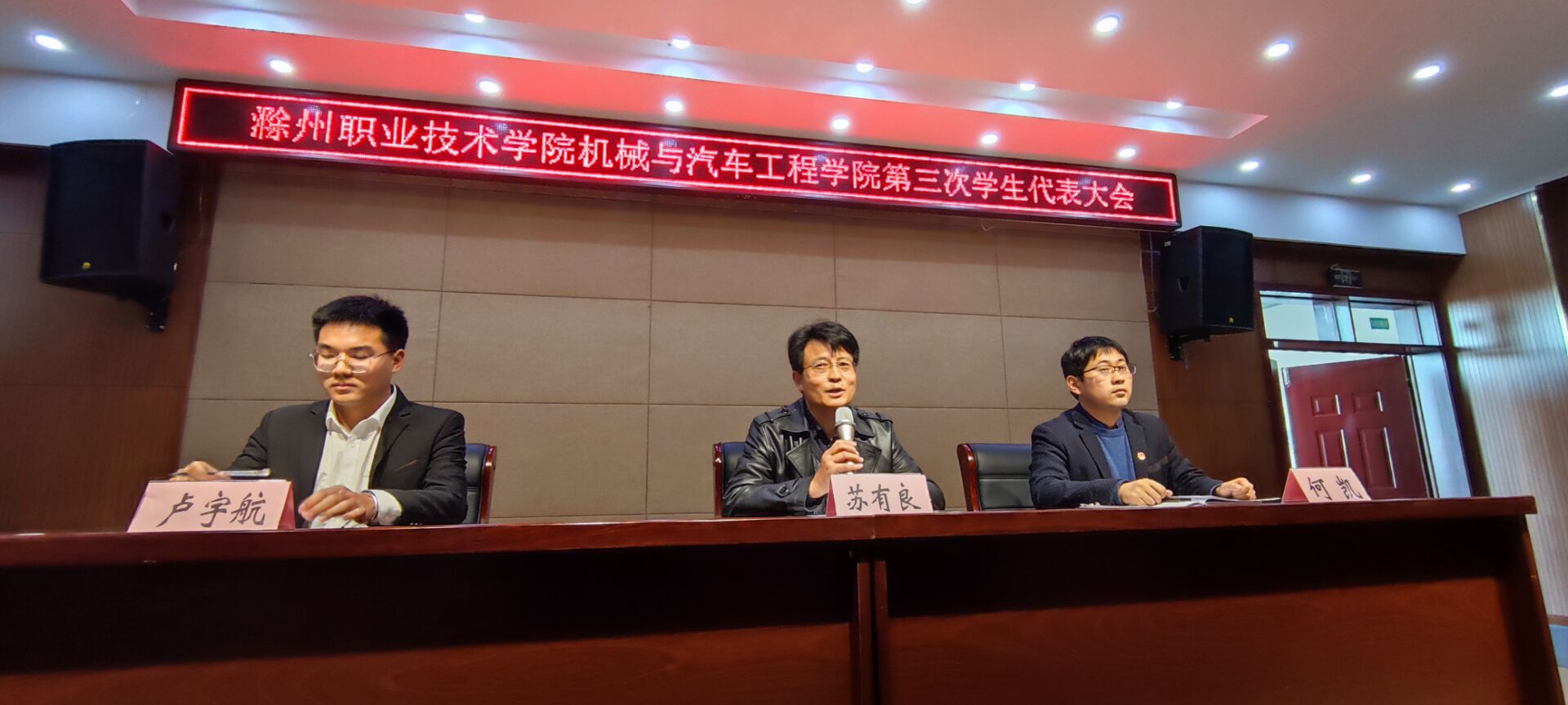 10月26日下午,机械与汽车工程学院在南阶203教室召开学院第三次学生代表大会。院党总支书记苏有良、院团总支部书记何凯以及各班级学代表共79人出席大会。
