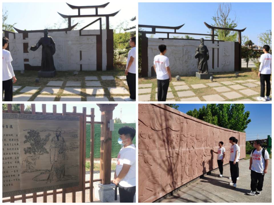 镜园廉政文化公园的入口左右两侧,树立着“知行合一”王阳明雕像与“刚正不阿”包拯雕像。在清风长廊里,海瑞、曾国藩等清廉人物的事迹一一展现在人们的面前。顺着长廊,来到石壁前,团队成员一起回顾了红色经典,安徽凤阳小岗村的家庭联产承包责任制,激发了农民的劳动热情,带来农村生产力的大解放,农业生产和农民收入均有很大提高。