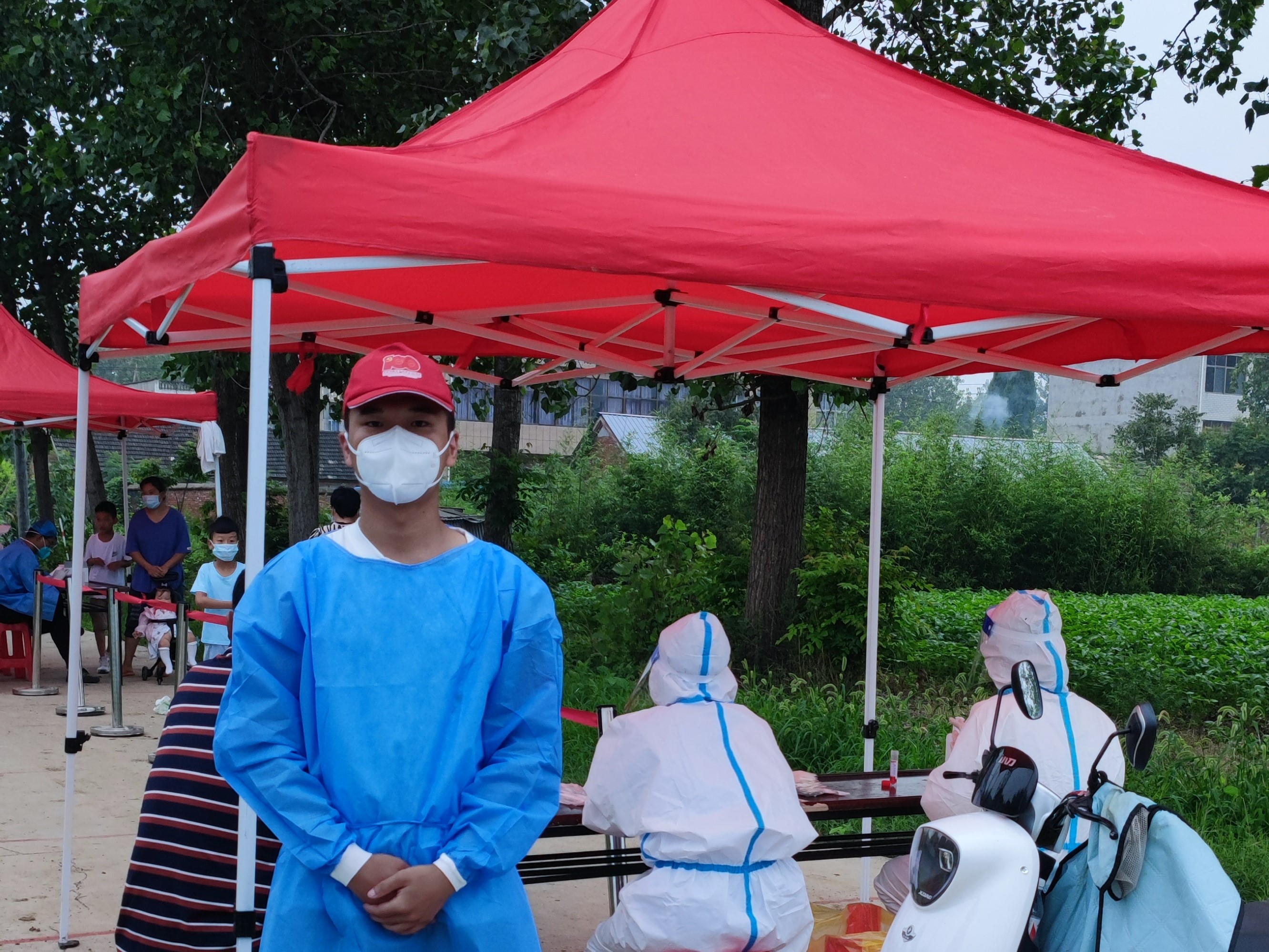 2022年6月26日,安徽泗县新冠疫情反复,形势严峻。在面对突发的新冠肺炎疫情,21新能源一班的周野同学主动请缨,第一时间主动联系泗县团委,申请加入志愿者的队伍中。“总要有人上的,这个人为什么不能是我呢。”作为入党积极分子的他话语坚定。应泗县急防疫政策要求,每天需要检测几万甚至十几万管的核酸,周野同学和他的志愿者同伴们负责将来自泗县各个乡镇的核酸检测试剂集中送到泗县体育馆,待核酸检测完成后再打包送入每一辆核酸检测车。在此次返家乡志愿服务中他不顾个人安危,冲锋在抗疫一线,用实际行动诠释了当代青年的使命与担当。