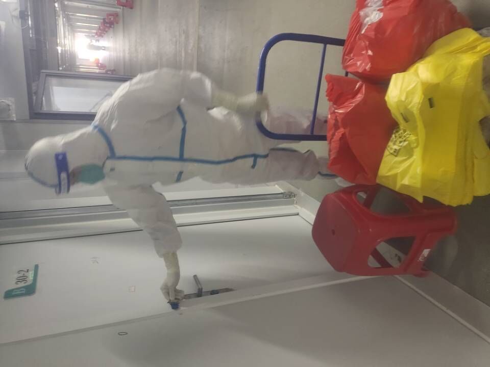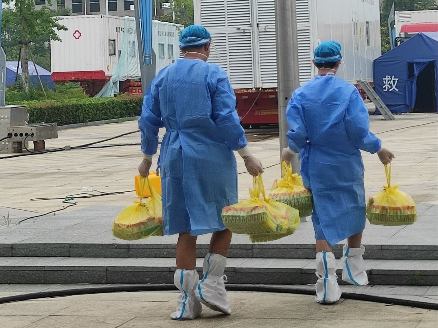 在安徽阜阳颍上县,20数控1班的李阿龙同学同样也在做着志愿服务。在假期开始之前,他就联系家乡的方舱医院,报名参加志愿服务工作。2022年7月泗县的疫情形势严峻,颍上县政府接收了泗县的部分密接人员。他的工作就是每天早中晚按时给隔离人员送饭,按时收取方舱内的生活垃圾。简单的工作却暗藏着危险,每天的防护工作要细之有细,若因为防护不当造成群体感染,后果不堪设想。每天穿着密不透风的防护服,全身被汗浸湿但依旧在自己的工作岗位上。他说:“虽然自己做的事情微不足道,但我仍然会尽最大的努力,为疫情防控贡献出自己一份力量。”