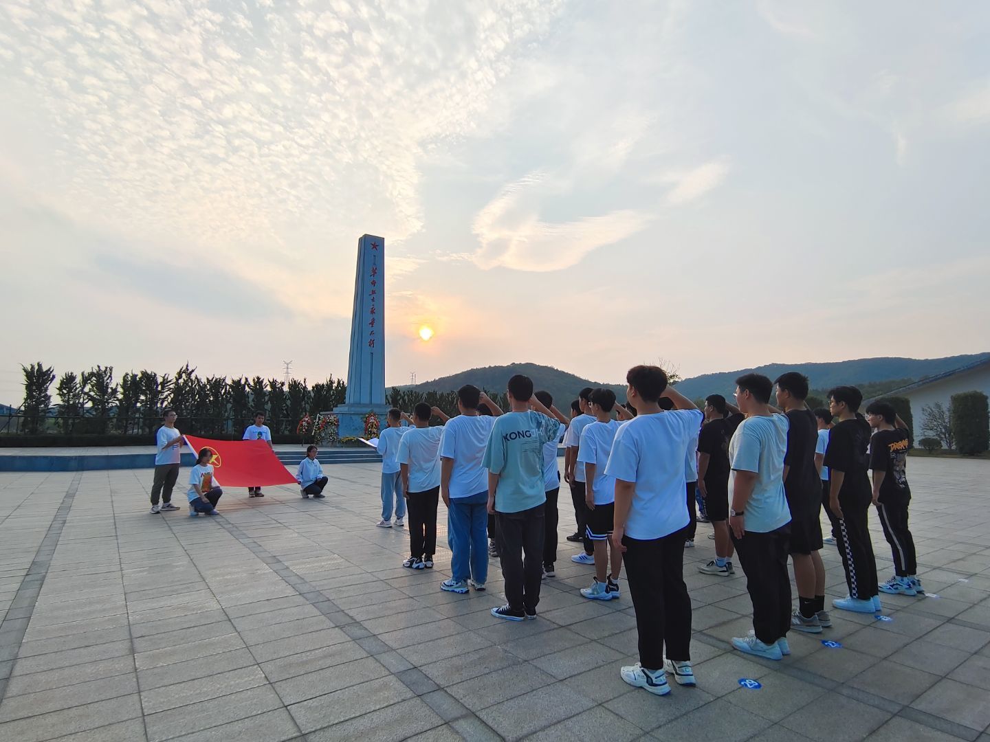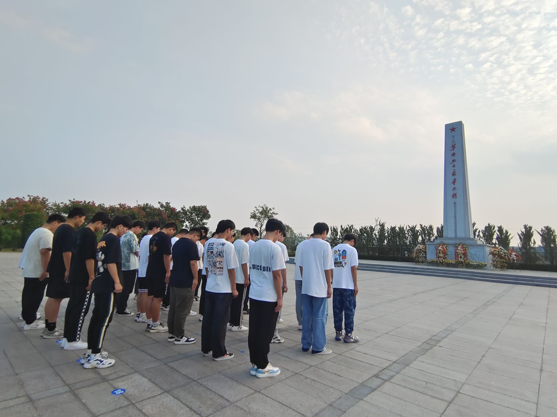 在烈士纪念碑前,青年团员整齐列队,“我宣誓:我志愿加入中国共产主义青年团,坚决拥护中国共产党的领导......”全体团员在革命烈士纪念碑前庄严宣誓,重温入团誓词。通过一句句铿锵有力、掷地有声的誓言,团员们深切缅怀革命先烈,铭记先辈遗志,矢志为国家富强、民族复兴奉献自己的青春力量。宣誓完毕后集体默哀一分钟,告慰烈士忠魂,寄托无限哀思。