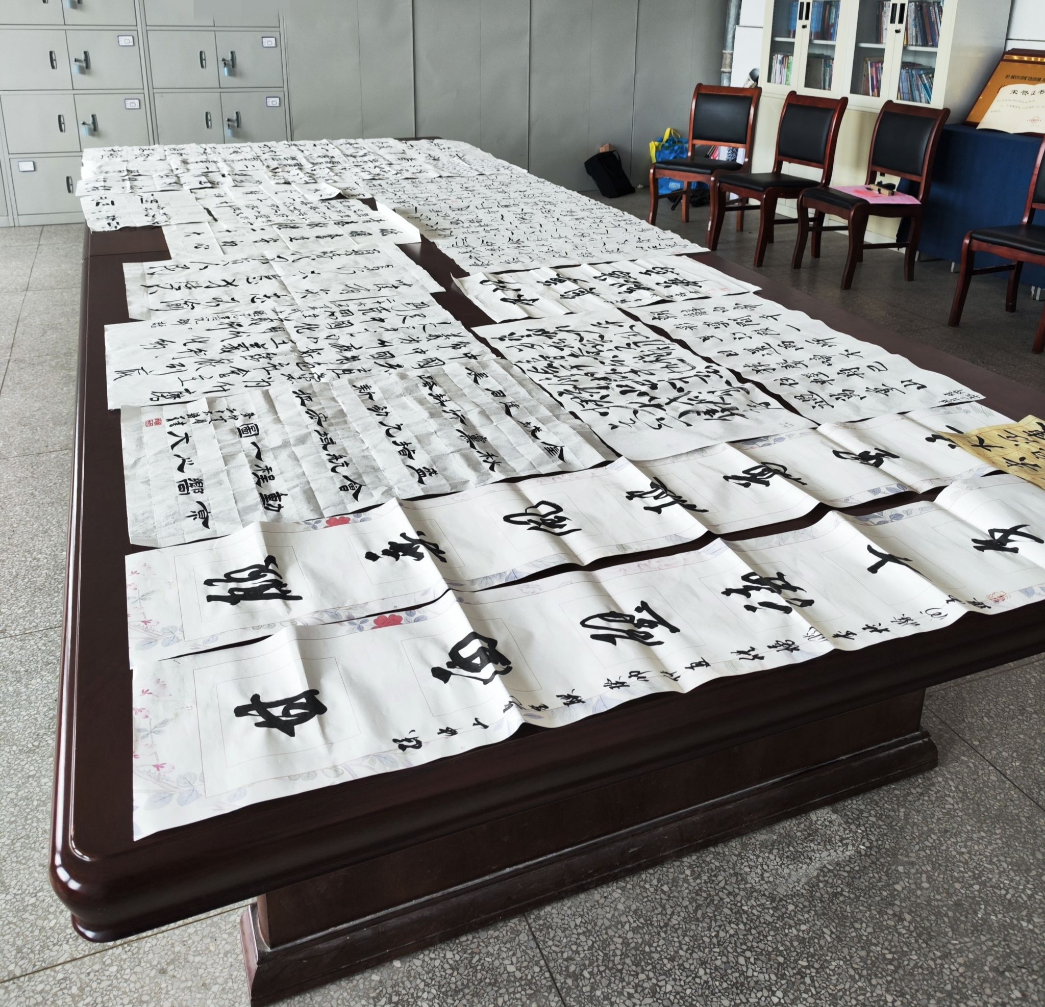 一幅幅作品,将对国的热忱,对党的忠诚融为一体;一个个汉字,从学生的笔尖流淌出来,犹如串串美妙的音符,谱成了汉字书写的美妙乐曲。