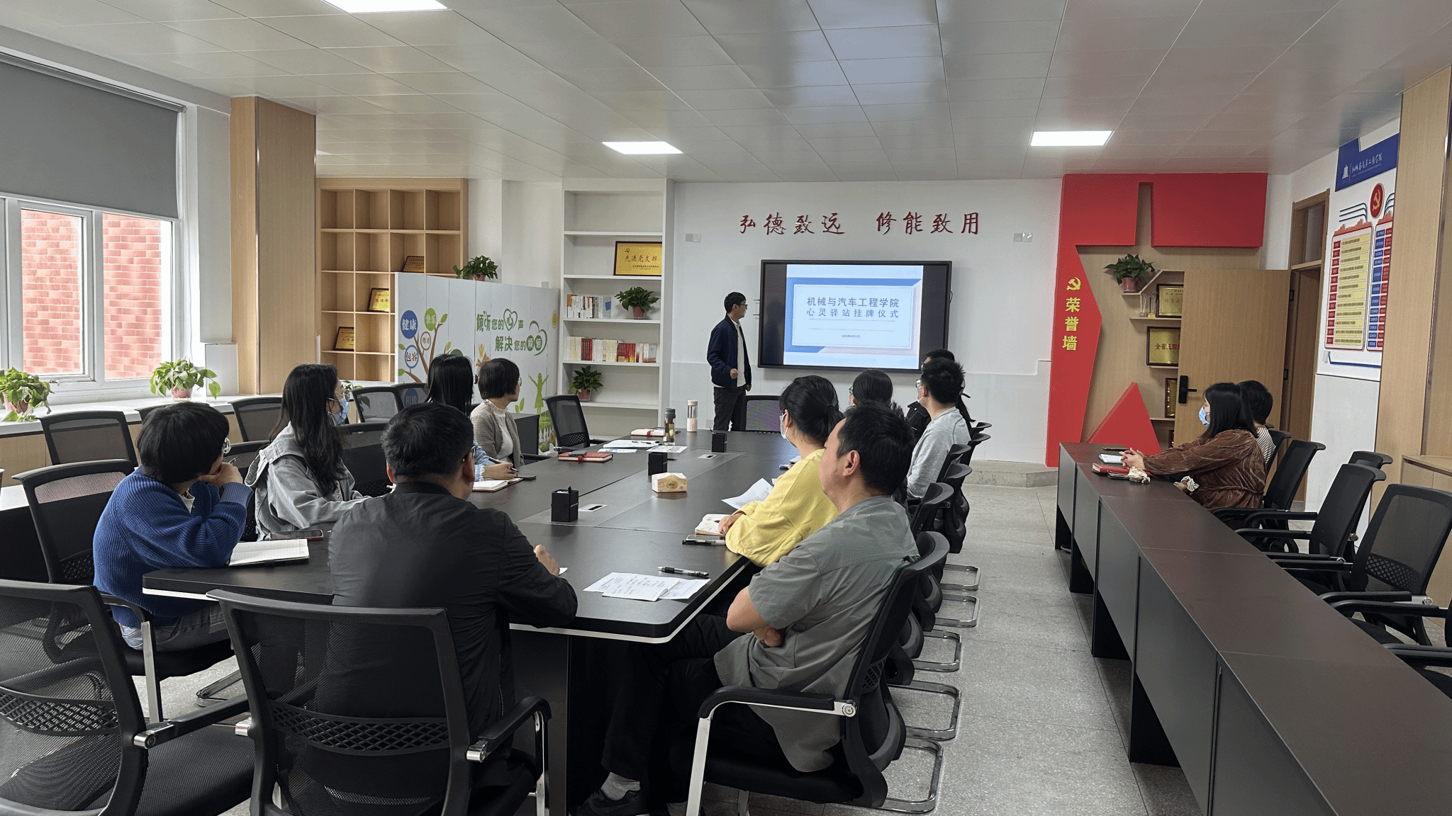 首先为机汽学院心驿站挂牌仪式,刘旭冉向各位辅导员介绍机汽学院的驿站使用指南为有需要的学生提供咨询交流场所,并提醒辅导员高度关注学生心理健康。