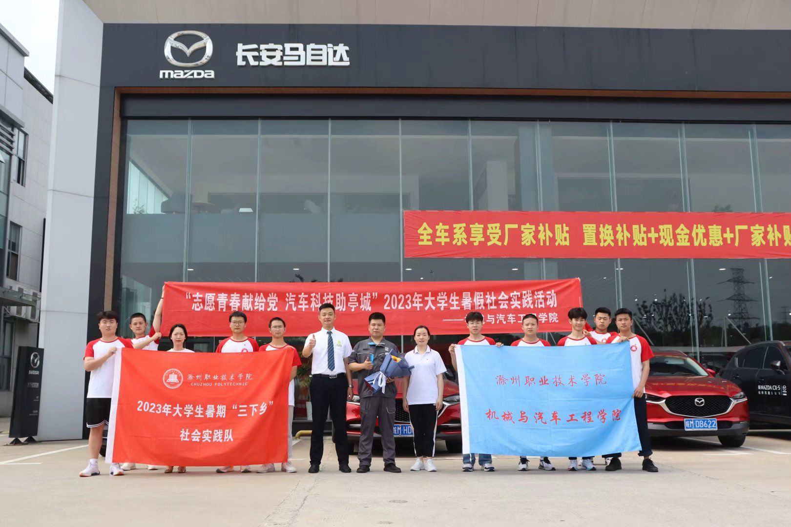 6月21日上午,新葡的京集团35222vip机械与汽车工程学院青春引擎实践小分队在倪子旭、陈琴两位老师的带领下前往滁州马自达4S店开展暑期“三下乡”社会实践活动。