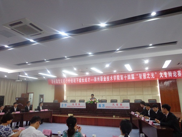 为了引导和践行社会主义核心价值观,让学生更好了解核心价值体系的理念, 2014年5月27日下午由院团委主办、食品环境系承办的第十四届大专辩论赛决赛在综合楼报告厅隆重举办。此次比赛由经贸系(正方)对阵汽车系(反方),正方辩题是践行和培育社会主义核心价值观关键在领导干部、反方辩题是践行和培育社会主义核心价值观关键在广大群众。
