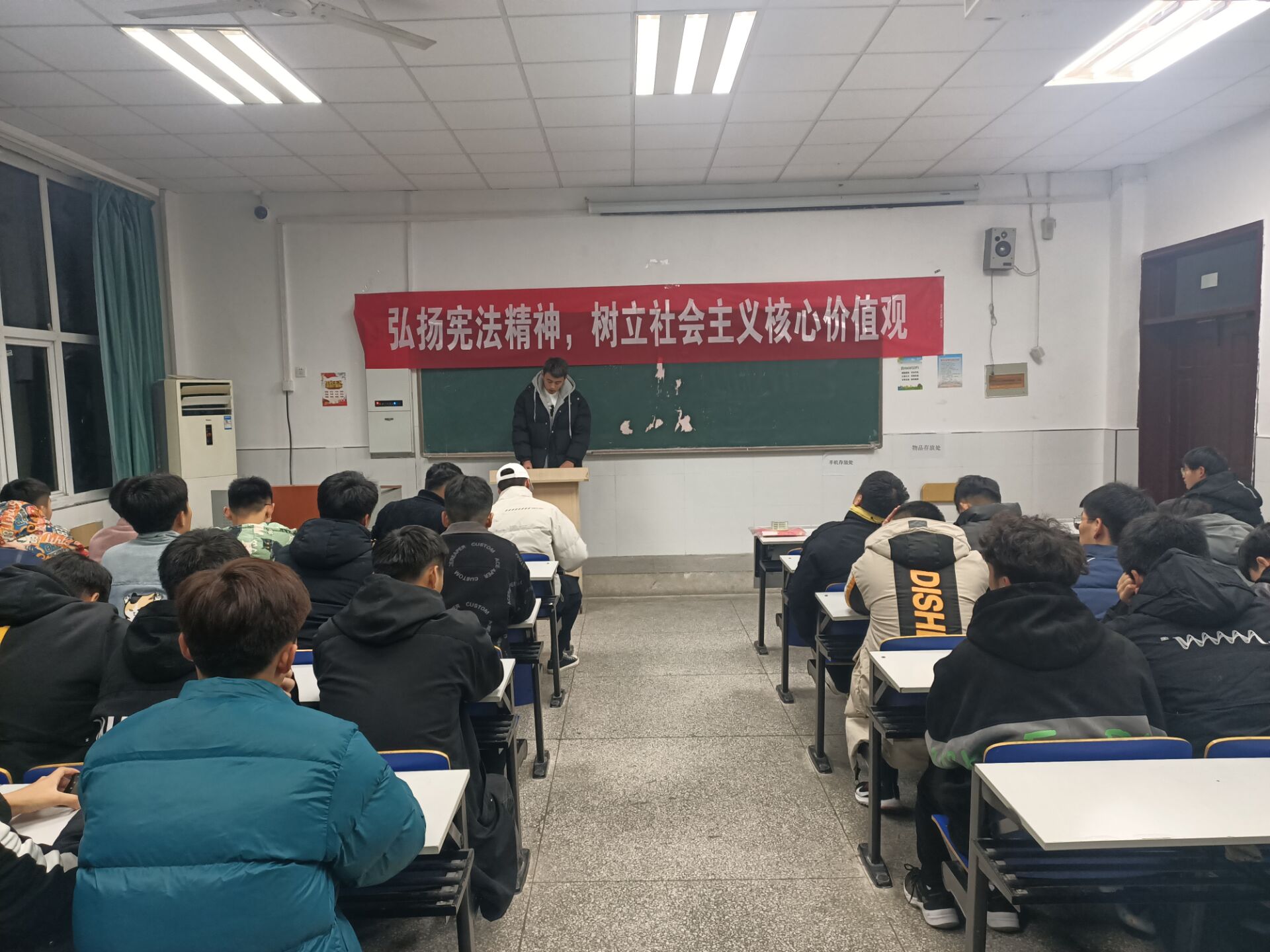 2020年12月4日晚6点,新葡的京集团35222vip机械与汽车工程学院团总支,在5113教室开展“弘扬宪法精神,树立社会主义核心价值观”主题活动,各部门紧密配合,同学们积极参加。