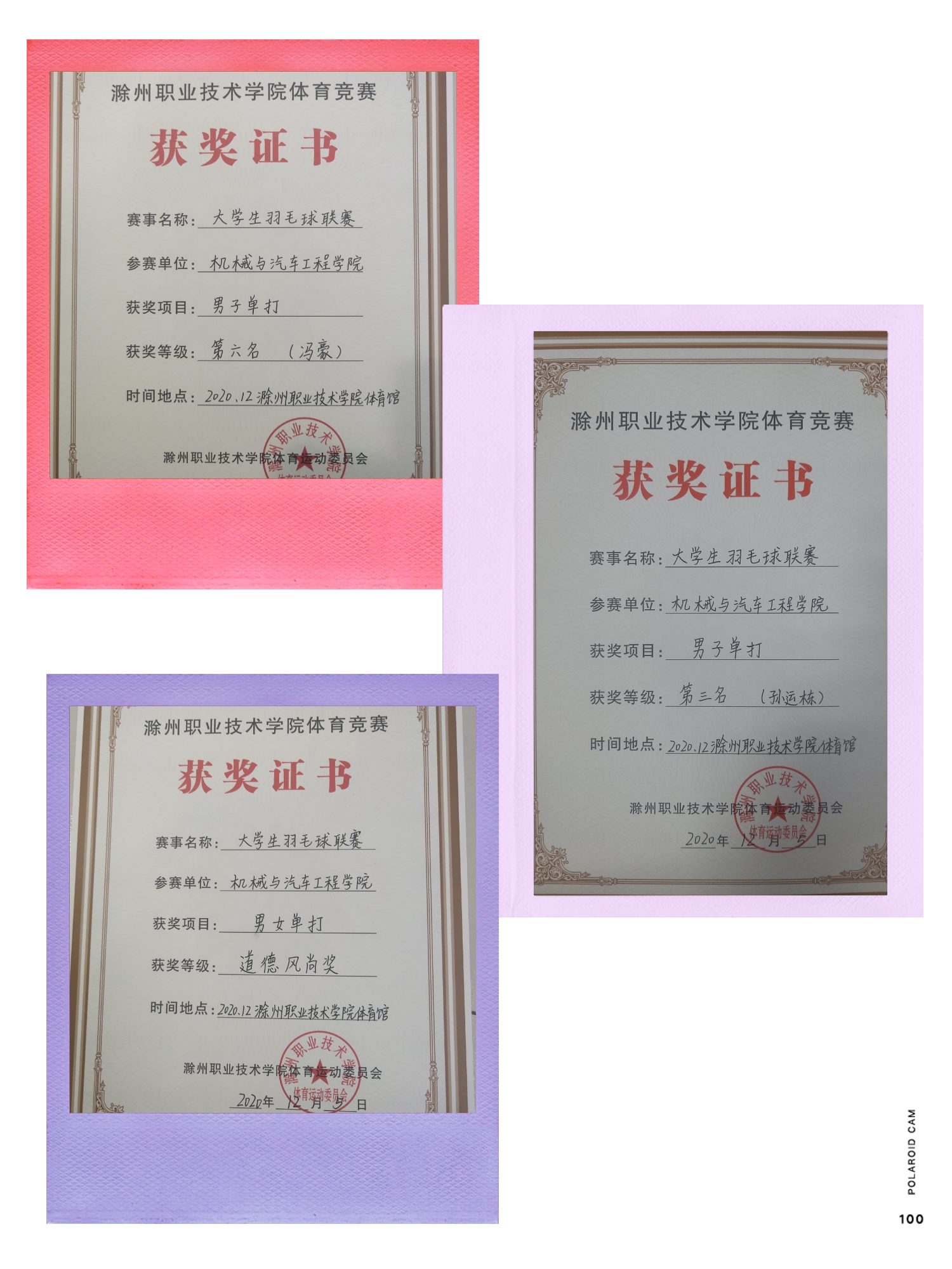 12月5日上午,新葡的京集团35222vip羽毛球协会在校体育馆举办羽毛球比赛,机械与汽车工程学院学生积极参与其中,并取得优异成绩,荣获学院“道德风尚奖”。