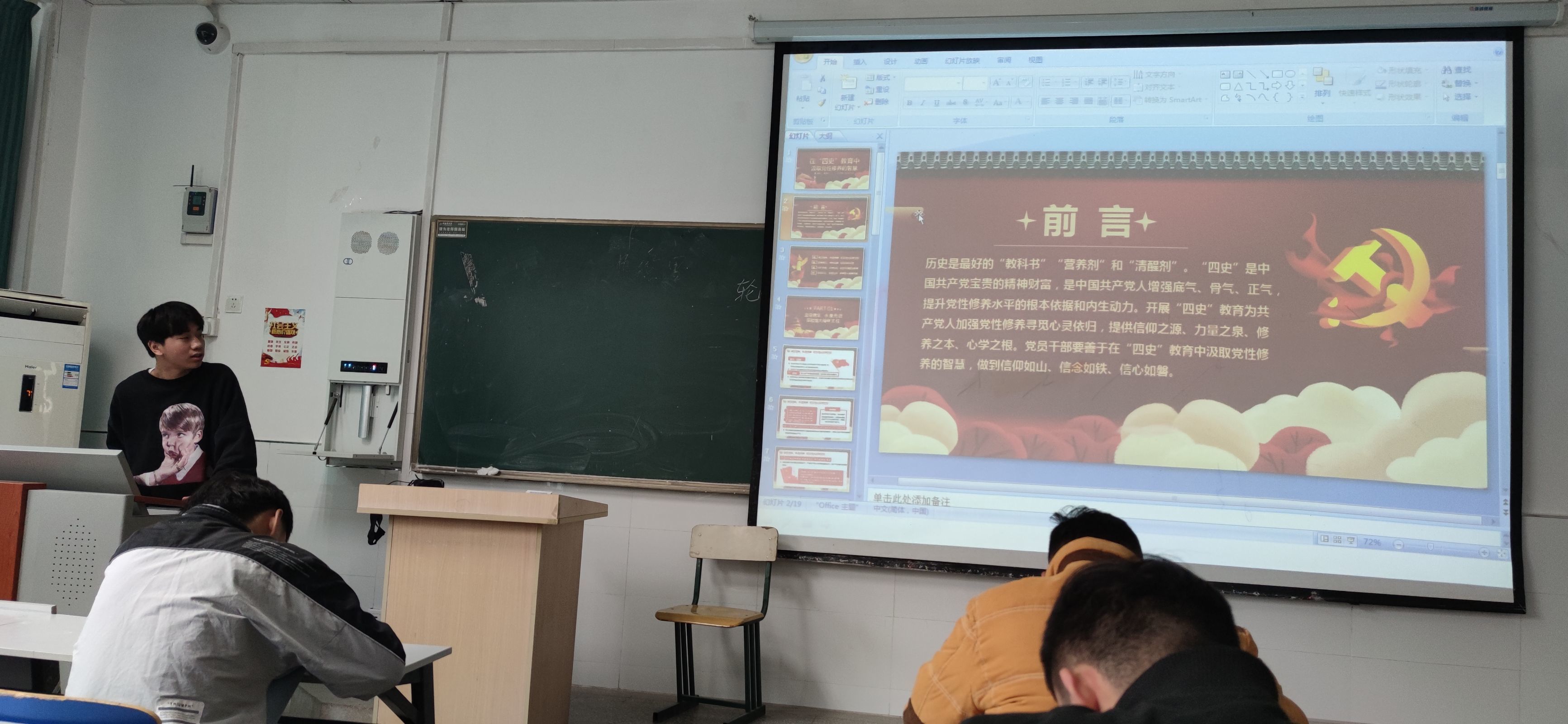 2021年4月7日新葡的京集团35222vip2020级新能源汽车技术2班在5113教室开展以“四史”为主题的团日活动,希望同学们在“四史”教育中汲取党性修养的智慧。