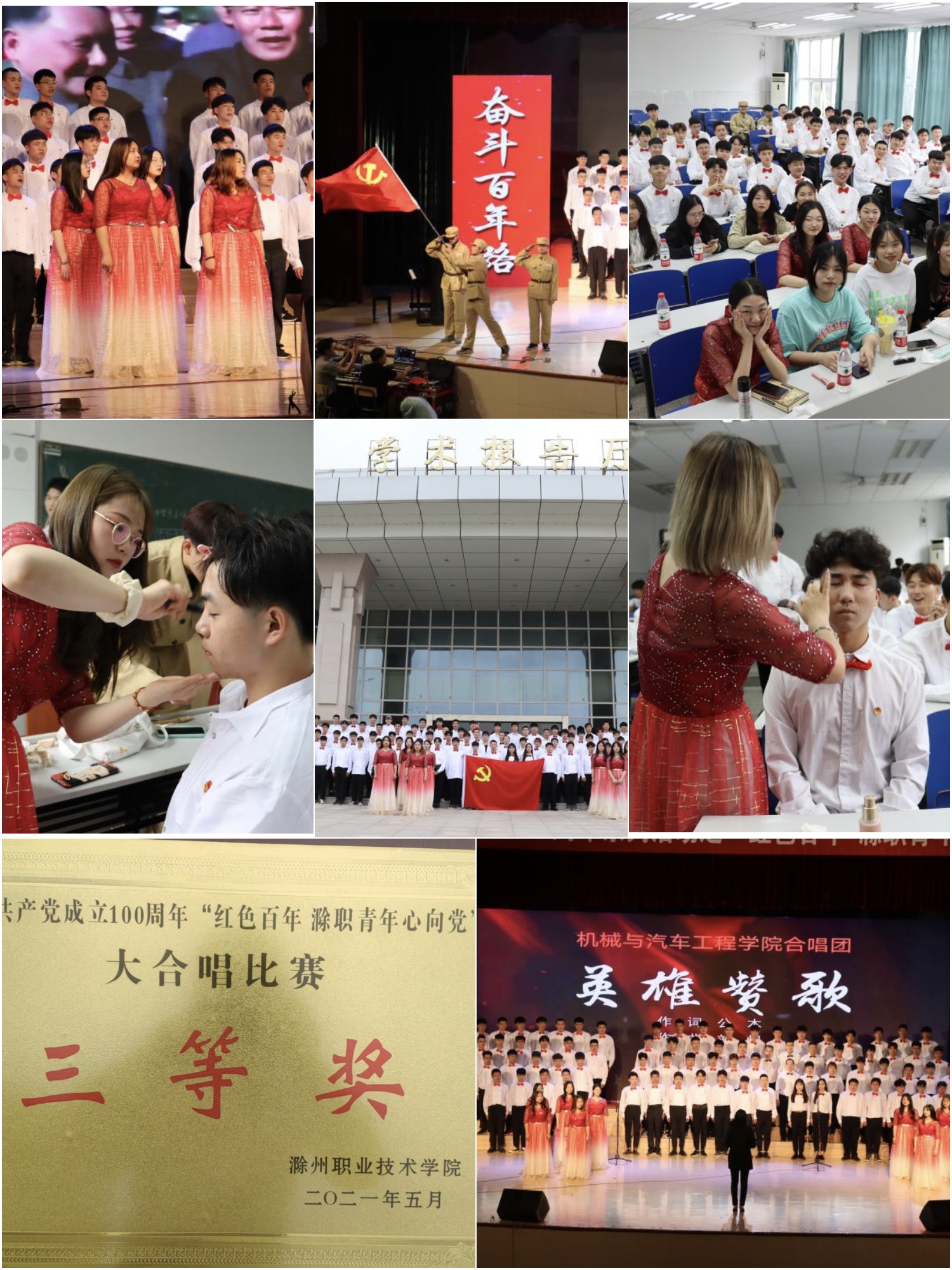 迎建党百年,展青春风采。2021年5月12日,新葡的京集团35222vip庆祝中国共产党成立100周年系列活动之“红色百年,滁职青年心向党”大合唱比赛在学校学术报告厅举行。机械与汽车工程学院合唱团热情洋溢,用歌声尽情抒发着热爱党和祖国的情怀,表示对革命先烈的缅怀和崇敬,并获得三等奖。