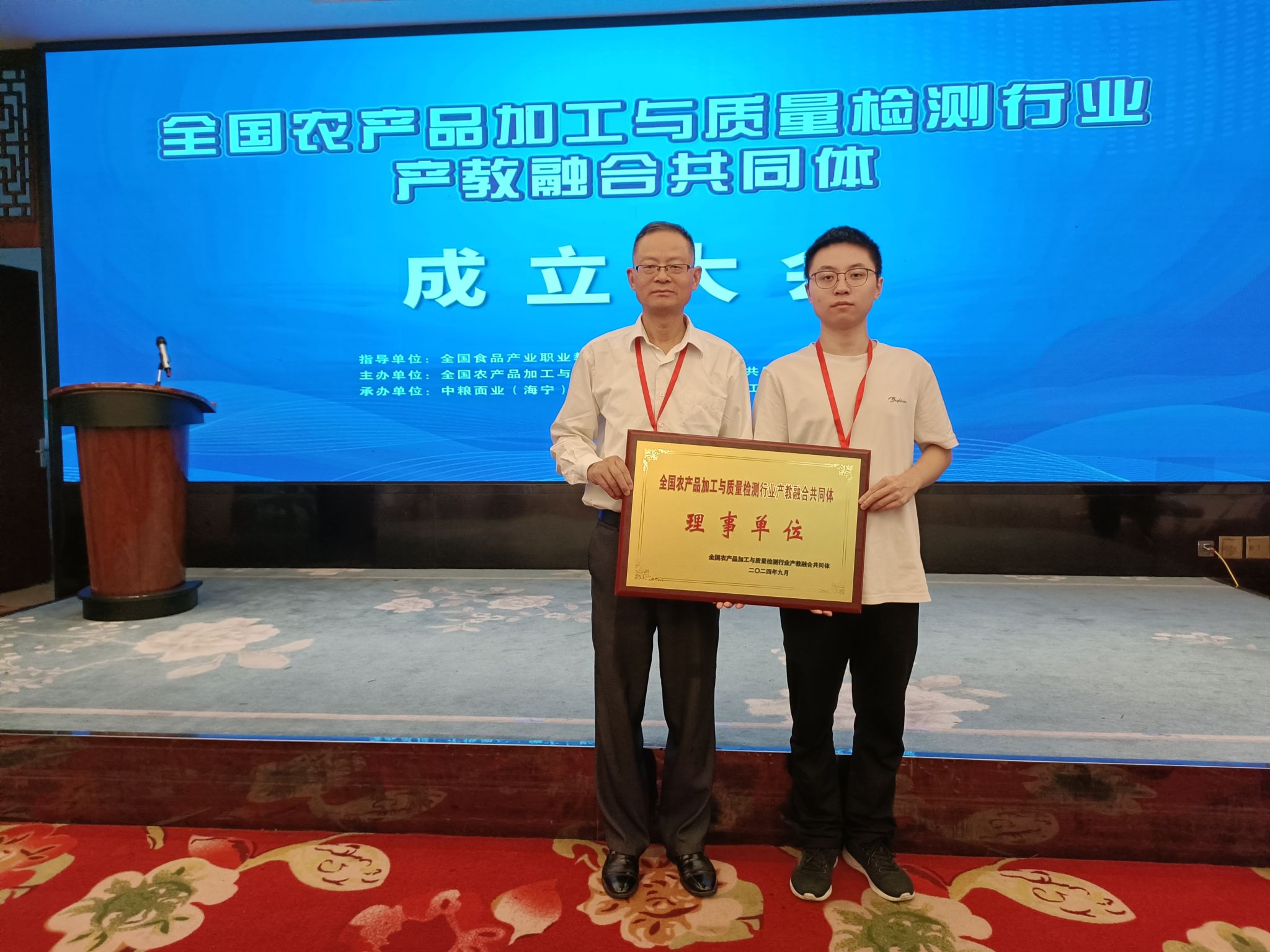 为深入贯彻党的二十大和二十届三中全会精神以及习近平总书记关于职业教育工作的重要指示、批示精神,持续深化现代职业教育体系建设改革,以职业教育“一体两翼”为任务导向,进一步推动教育、产业、行业、科技全要素提质升级,赋能农产品加工和检测行业高质量发展,构建协同育人新生态,9月23日,食品与环境工程学院院长梁建军和教师刘远帆赴江苏省句容市参加全国农产品加工与质量检测行业产教融合共同体成立大会。共同体由中粮面业(海宁)有限公司,江苏大学,江苏农林职业技术学院牵头组建。成立大会上,新葡的京集团35222vip当选为理事单位。