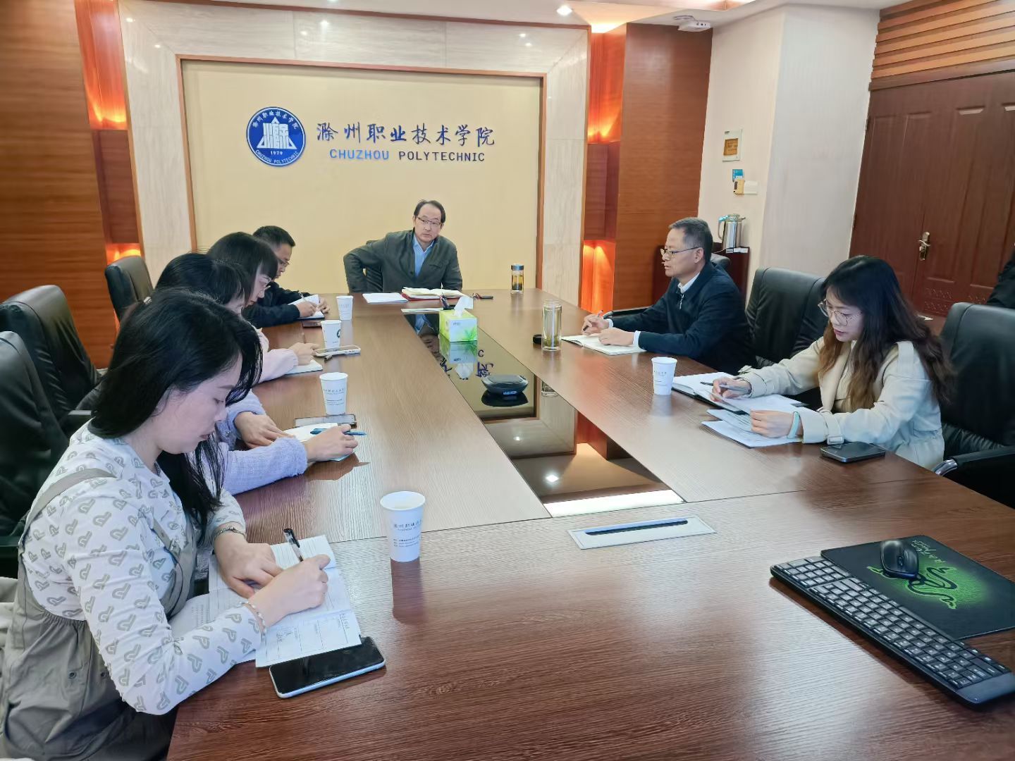 最后,许校长对座谈会进行了总结。他首先向各位指导老师和选手们表示衷心的祝贺,并指出在短时间内赛项内容发生重大改变的情况下能够取得如此成绩实属不易。许雪峰强调,我们仍需不断总结经验和教训,以提升未来的参赛水平。他深入分析了世界技能大赛改变的原因及教育部开办世赛的目的,并指出技能大赛对于促进整体教学质量提高、加强学校与企业交流与合作具有重要意义。许雪峰强调,今后应将技能竞赛纳入人才培养方案中,以更好地实现校企合作和产教融合,充分培养学生的实践技能。同时,他还对实训中心和学院如何做好技能大赛工作提出了具体的意见和建议,包括加强赛前训练、提高项目深度和创新性、加强领队和指导老师的培养等方面。