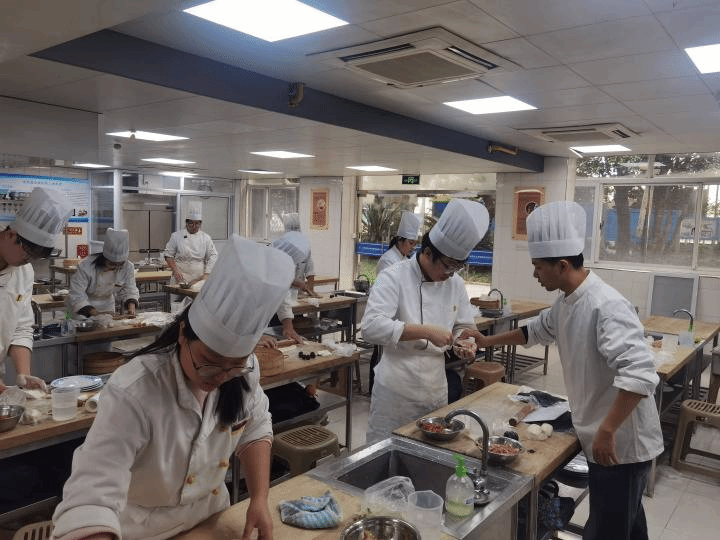 面点实验室则有着另一番有序的景象。从原材料的采购储存到使用,都遵循严格的食品安全标准。实验室的卫生管理细致入微,操作台面、烘焙设备等都保持着清洁。在教学中,教师按照标准化的面点制作流程进行教学,从配料比例到制作手法,都要求学生精确掌握。学生们分组进行实践操作,相互协作,在保证食品安全和卫生的前提下,制作出精美的面点作品。更重要的是学生自主准备实验材料、自我管理,这种规范管理的模式,不仅保障了教学质量,也为培养高素质的专业人才奠定了坚实的基础,为高质量的教学管理提供了宝贵的经验。