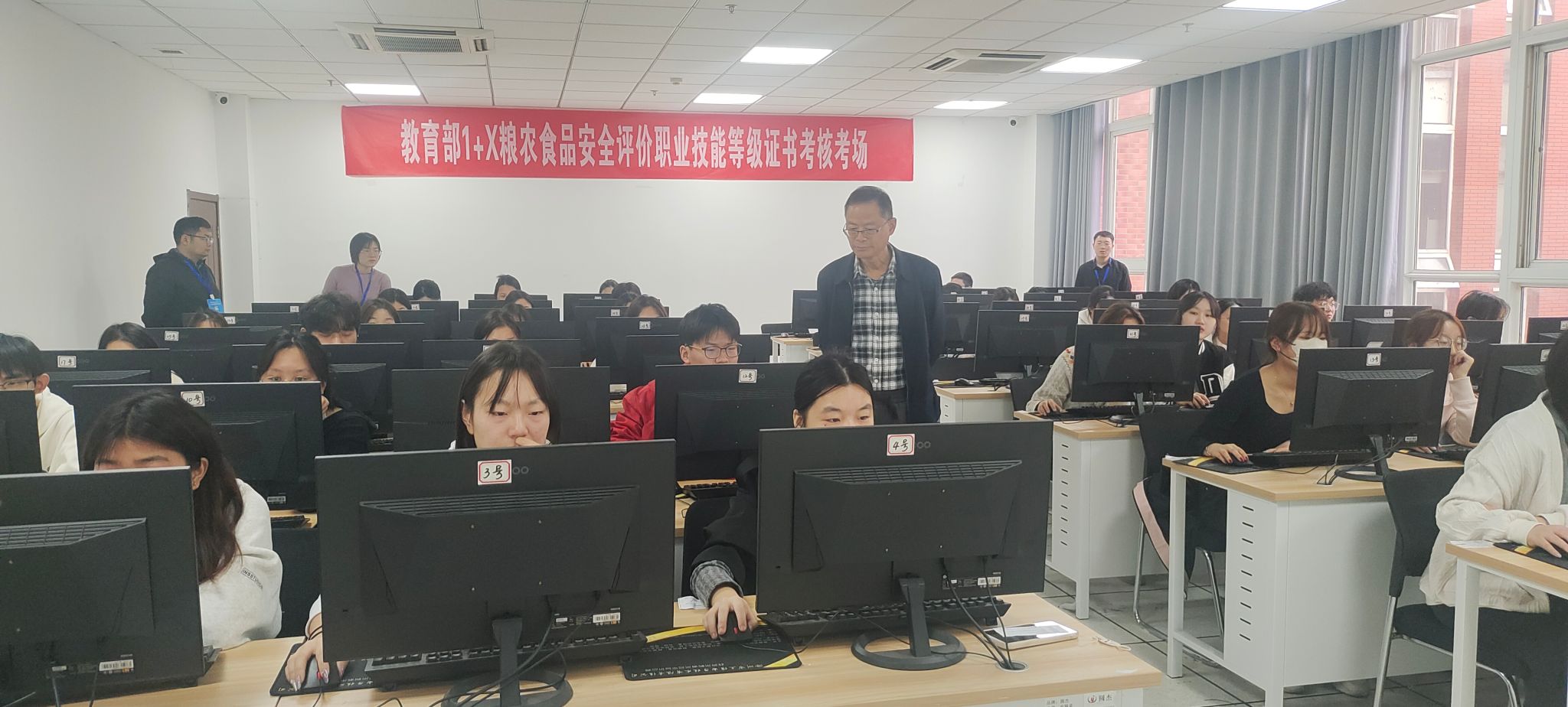 此次考试分为三个模块,分别是理论考试、虚拟仿真软件操作和实践考核。理论考试和虚拟仿真软件操作在学校机房进行,实操考核在食环学院实训室内进行。学生在考试前认真备考,参加相关的培训学习,考试前学院做好了各项准备工作,考核现场井然有序,顺利完成了此次考试工作。