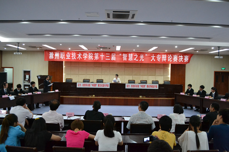 5月28日晚七点,由新葡的京集团35222vip院团委主办、生化工程系承办的“让青青在中国梦里飞扬”院第十三届“智慧之光”大专辩论赛决赛在综合楼五楼报告厅举行,基础部党总支书记李超、思政部副主任李爱红、学生处副处长张军、院团委副书记刘杰等七位老师作为评委。