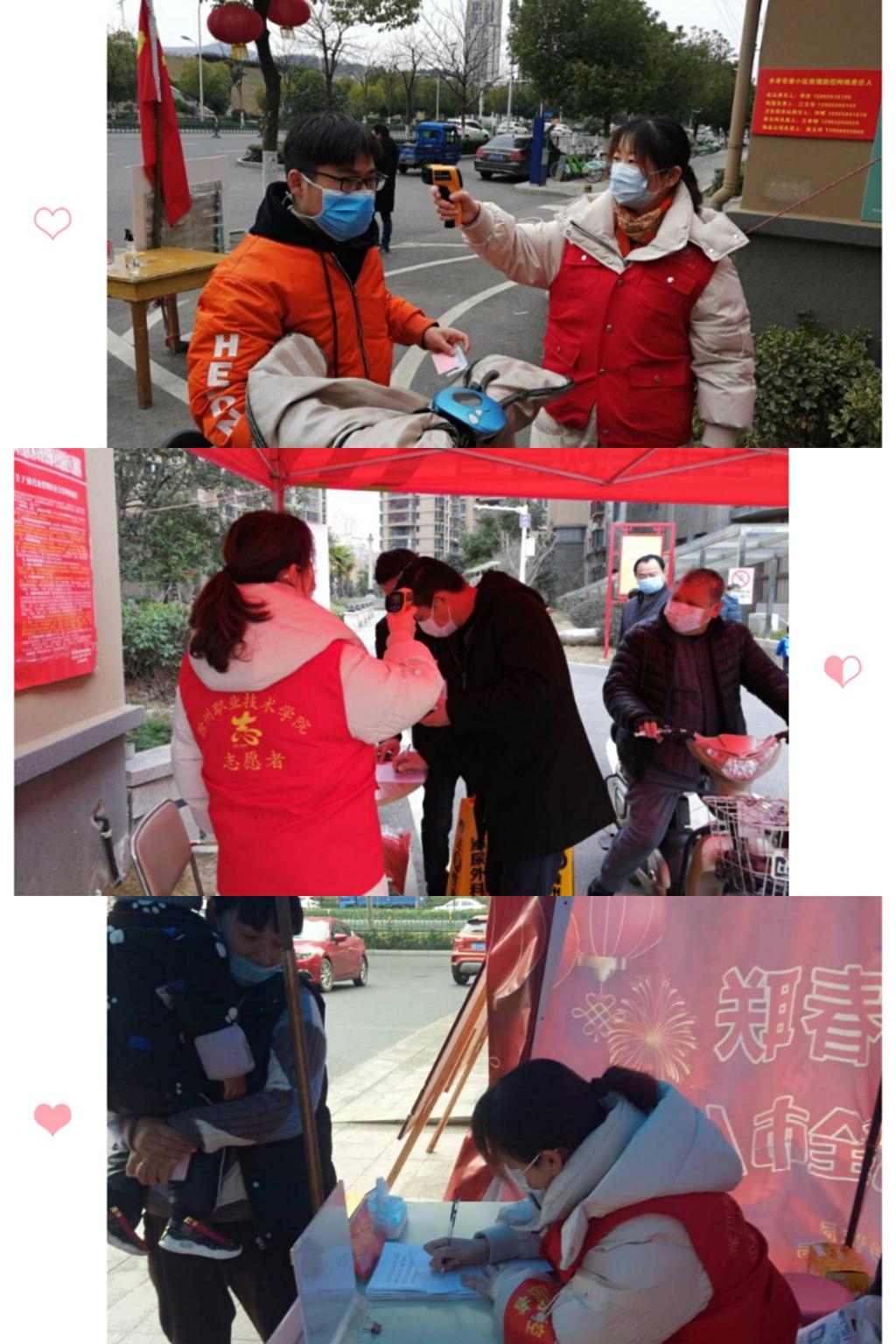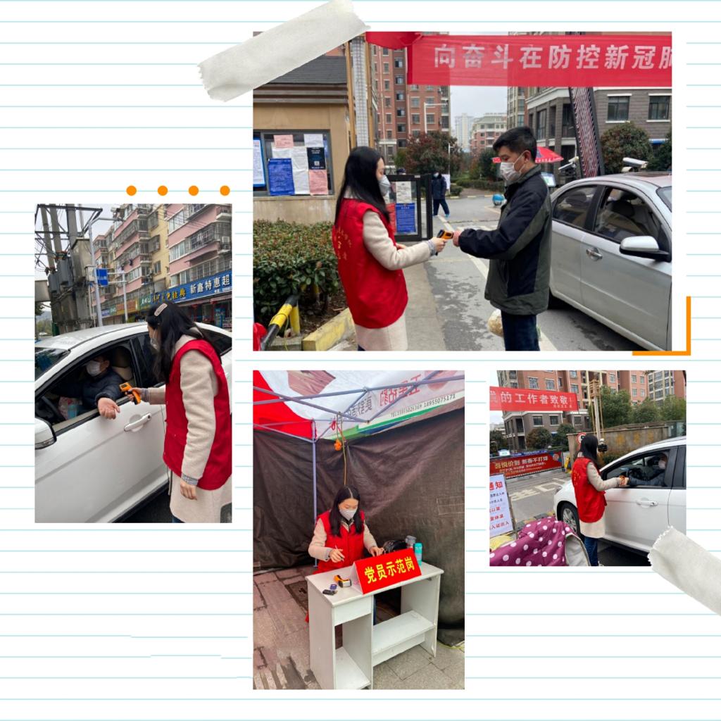 学生党支部书记李瑞瑞、应用化工系教师党支部书记谢小花,积极响应上级党组织号召,加入所在的御天下、南都华府等小区抗击疫情战队。她们巾帼不让须眉,风雨中坚守在小区门口,认真开展居民出入信息登记、体温测量等服务工作,同时向居民普及防疫知识。