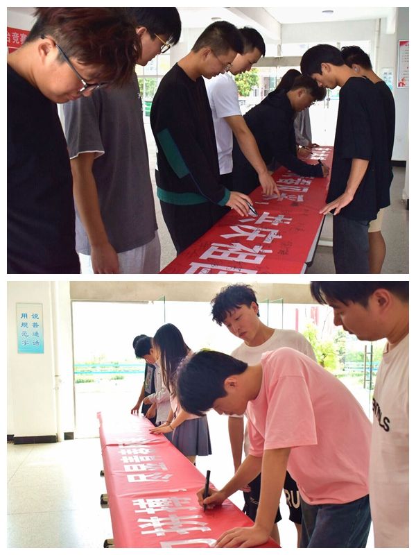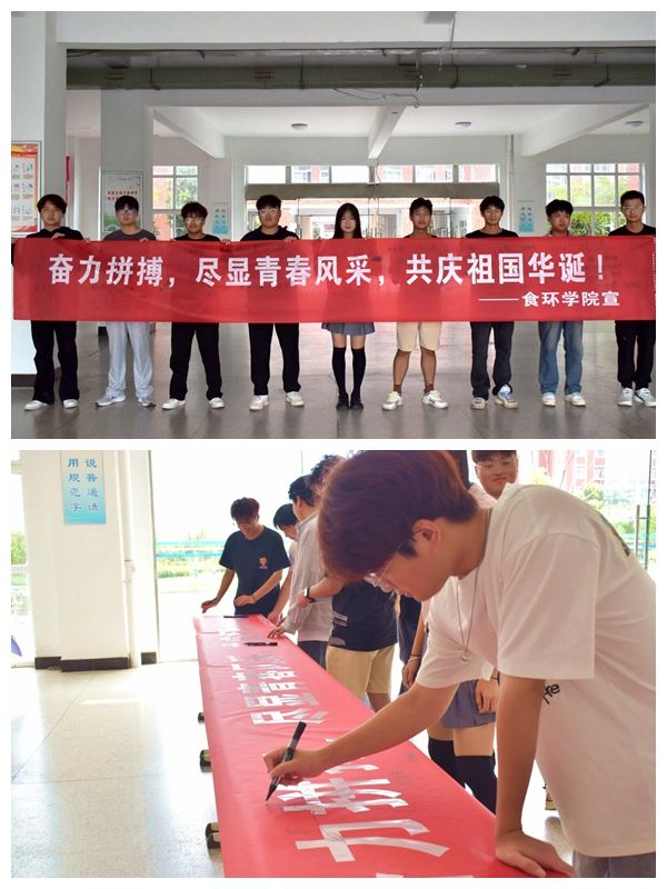 食环学院:学生会组织举办迎国庆横幅签字活动