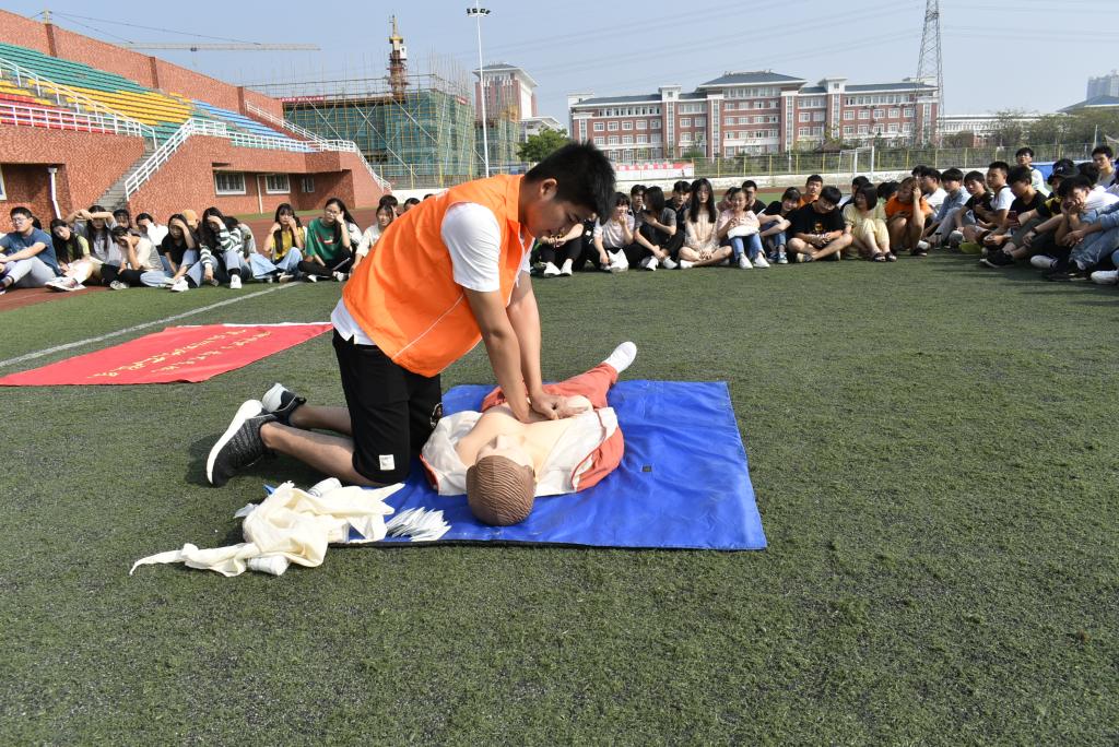 为普及应急救护常识,提高19级新生基本救护能力和安全意识,食环学院团总支学生会9月13日在操场对19级新生开展了一次集中的应急救护培训。
