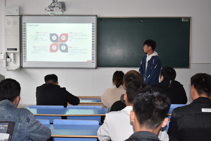 参赛选手依次上台进行PPT演讲答辩,他们根据个人职业规划、测评系统的测评结果并结合自身的实际情况,对个人职业生涯主客观条件进行测评、分析、总结,对个人的兴趣爱好和能力特点进行综合分析与权衡,参赛选手结合时代特点,根据自己的职业倾向,确定其最佳的职业奋斗目标,并为实现目标做出行之有效的规划。最后,两位指导老师对大赛进行点评,他们总结了本次参赛选手的优点和缺点,并强调比赛过程中不应忽视细节,注意PPT及规划书的格式排版以及上台演讲时的站姿等注意事项。